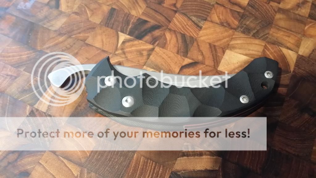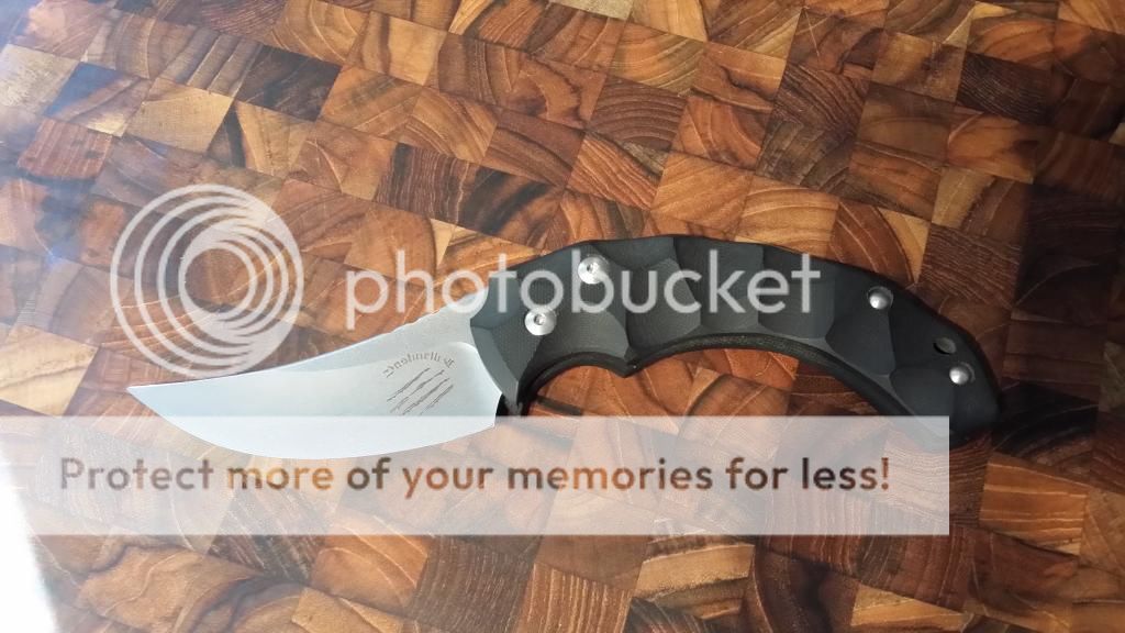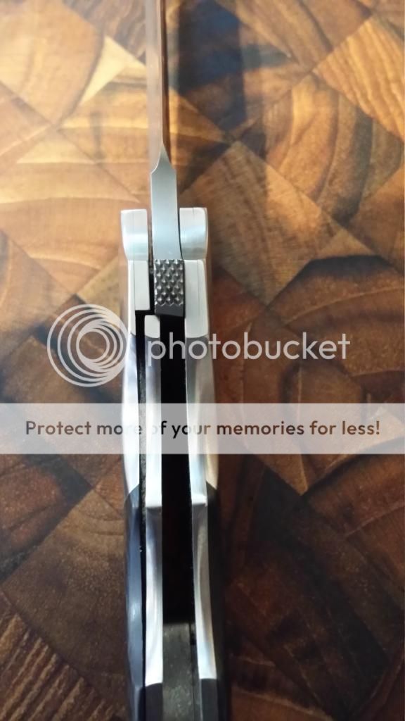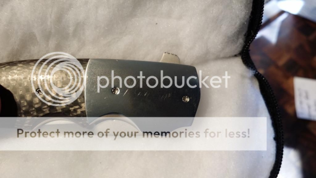 There are some very light scratches on the bolsters (shown in pics) and the blade is off center, but does not rub liners (shown in pics). Otherwise, the knife is mint. Never used, carried or sharpened. Detent is strong... keeps the knife closed, but opens easily. Rock solid lock up. Includes zippered pouch.