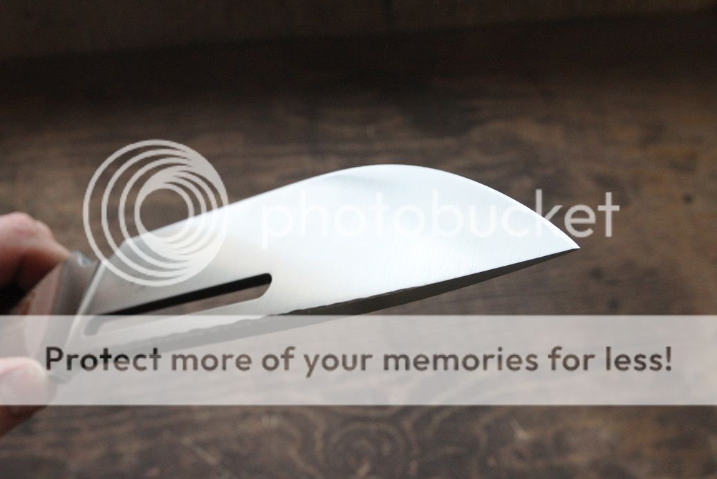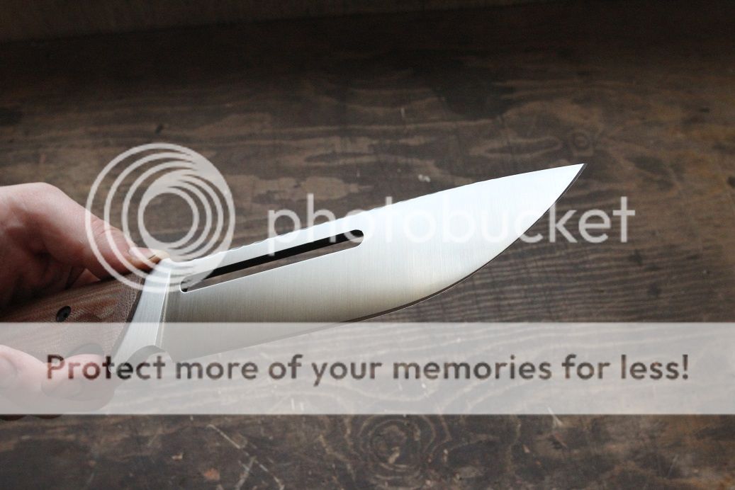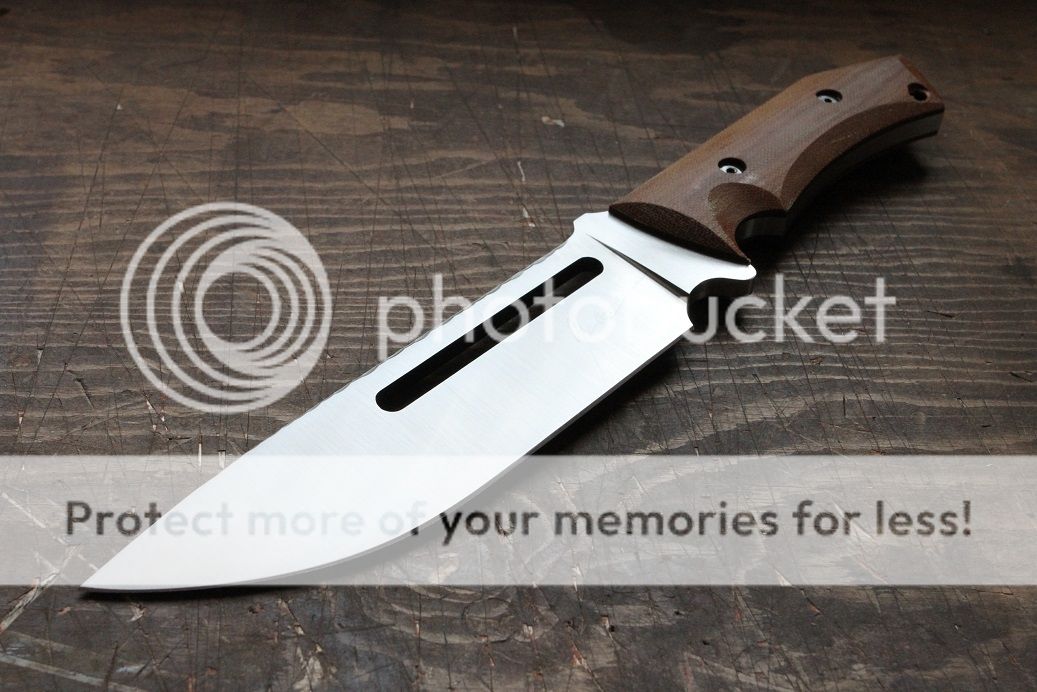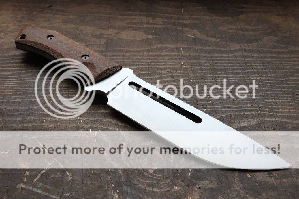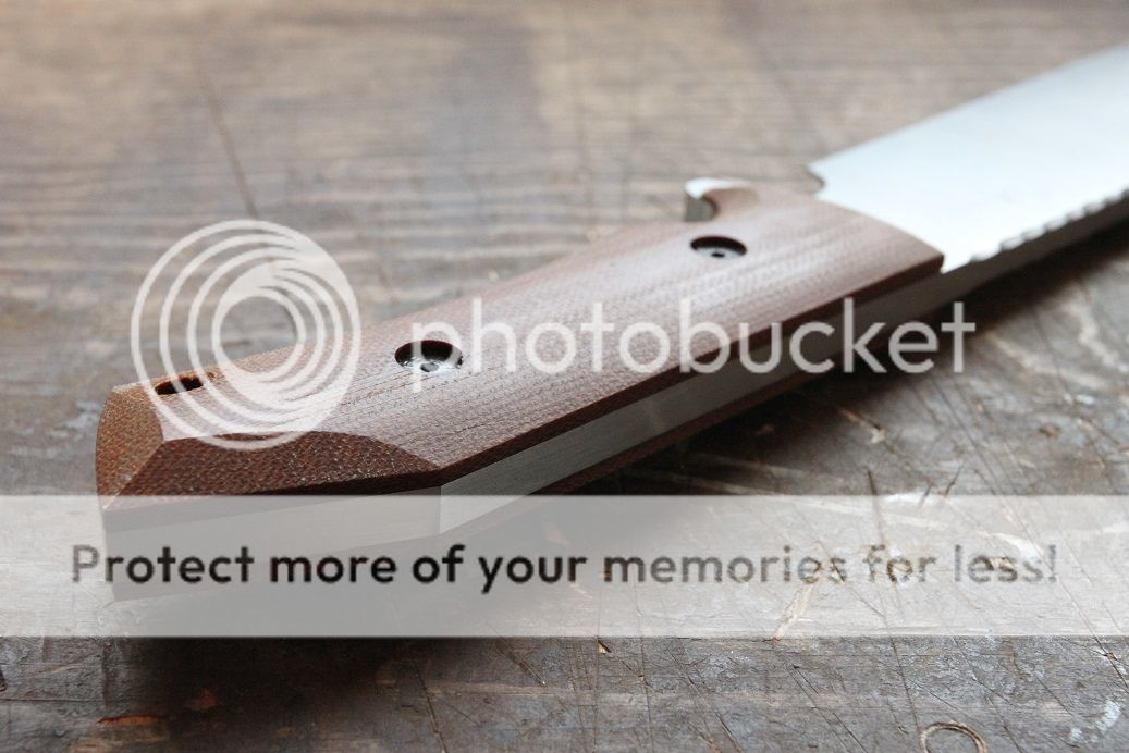 scales are natural canvas micarta with removable hardware. the spine of the knife has a bit of knapping.