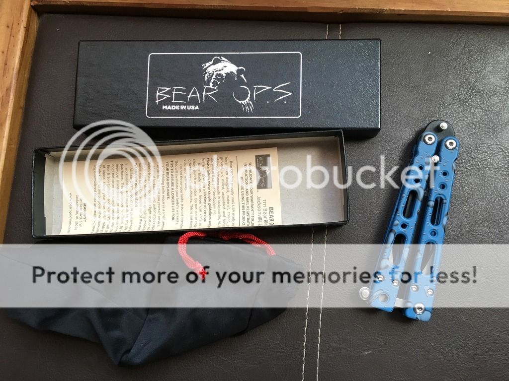 Bear Ops Bear Song IV Blue Raindrop Spear 1095 Carbon, powder-coated, aluminum handles.