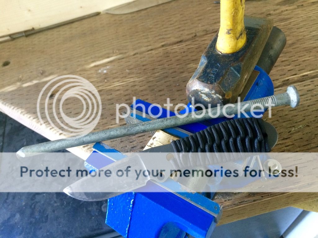 normally cement nails was HTed about HRC40-45 , much harder than mild steel , do you wanna try ? i think cement nails will ruin the edge of your cool AD.