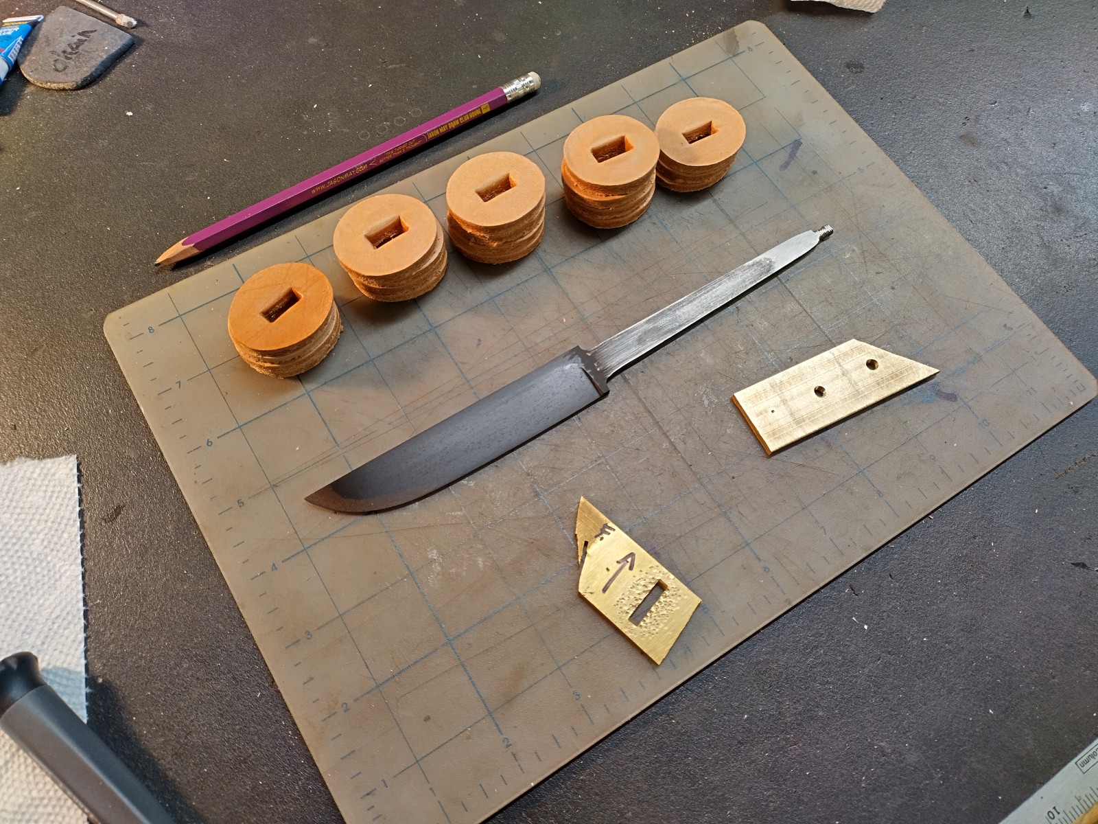 * Finishing: I finished the brass to 400 and pre-finished the leather by pulling strips of 180 and 280 around the handle (not lengthwise).