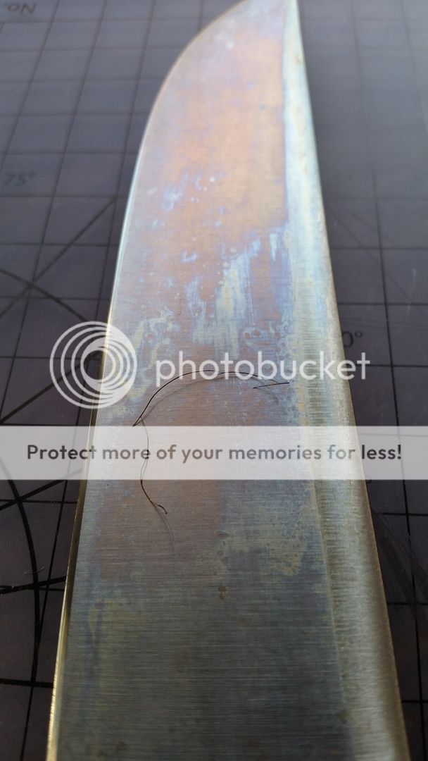 But as it stands now, .025 behind the edge with a convexed edge and as you can see it is hair whittling sharp.