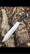 Very impressive work! Looks ferocious!View attachment 1275765 This is one I made about a month ago. I decided I needed a new monster Bowie and this is the result. 18.25 inches overall, 1/4 inch 5160 with black G10. It’s big, it’s heavy and it chops like a demon