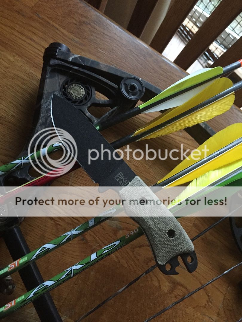 I still have this bow; It's a '94 Hoyt Flashpoint - though I'm probably going to see if I can find a new home for it....the new Mission Riot is just so much easier to shoot. Also pictured is my Camillus BK-11 with custom Kryptoglow scales.