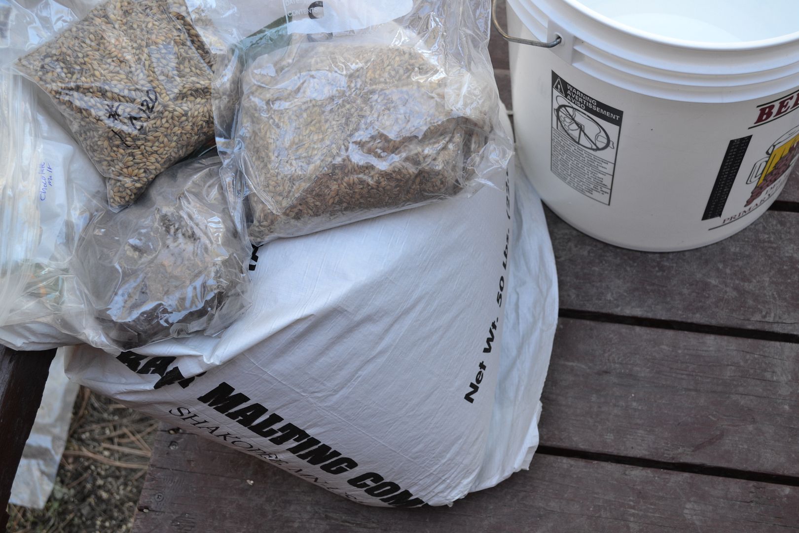 Grain together for a batch... my main 2-row Barley and some specialty grains for more flavor and color. I was making a Brown Ale.