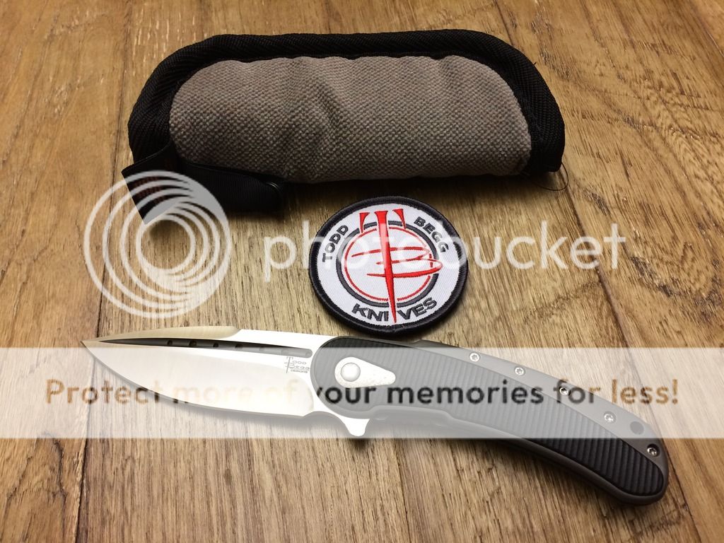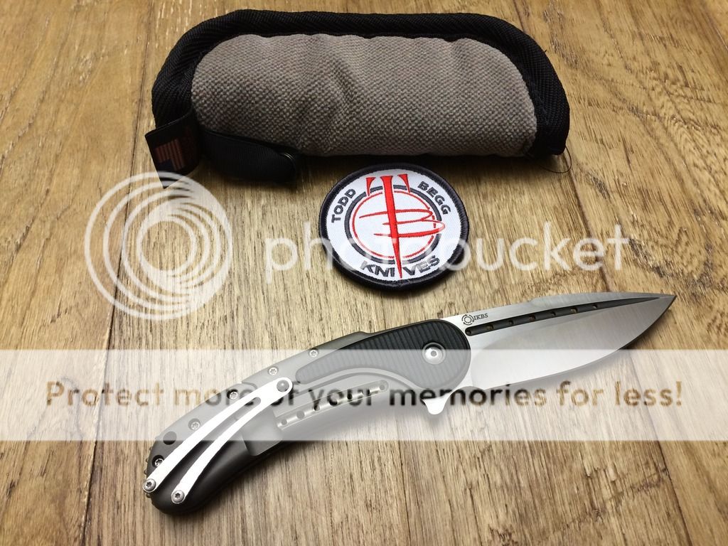 Begg Bodega Price SOLD0: Original black g-10 bodega that I've carried few times. Some pocket wear on the top of the frame next to the backspacer but otherwise all other areas are great. This one just got upgraded to ceramic bearings as evident by the black bearing on the pocket clip. Original Begg logo. Also upgraded finish to include cracked ice to blade spine and flipper.