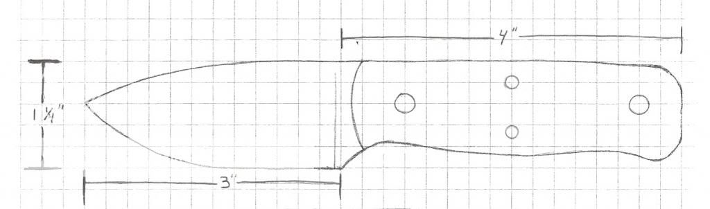 This one is kind of a Ky Fieldmate version 2. Stretched a little in the blade and handle, with the index finger groove removed. The blade is close to 1" tall, 3" blade, 3 3/4" handle.