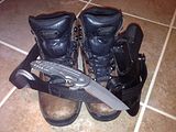 my two fixed blades the small one is my edc, both i bring when camping, redwing boots, and a belt that i made from 4000 lbs strap it unwraps to almost 8 feet and it can be used to tow a car.