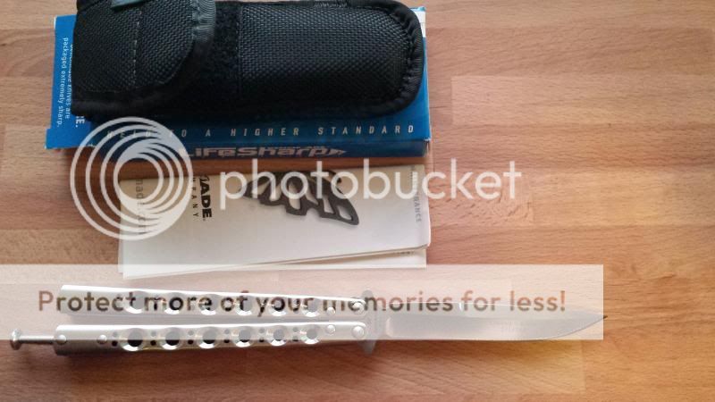 BM42SS (#371/500) - D2 weehawk blade, stainless steel channel-style handles, zen pins, spring-latch; mint condition w/ sheath, papers and box. I bought this and then put it in my safe and have never flipped it. I would like 450 shipped for it.