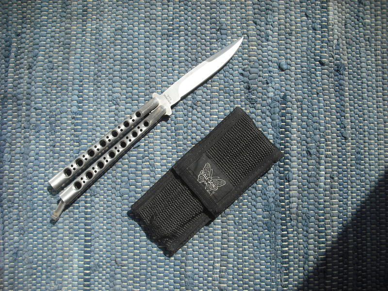 Benchmade 45, weehawk blade, stainless handles, t-latch. Very good condition for its age. Locks up solid open and closed. Latch shows very little wear. Minimal handle play. Blade has been lightly sharpened. No box. Includes sheath. $295 OBO Price includes pp fees and shipping in the US. Payment via PayPal or MO. Email: sontarans@hotmail.com