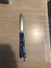 D2 steel blade blade HQ exclusive run with blue G10 handle titanium liners .