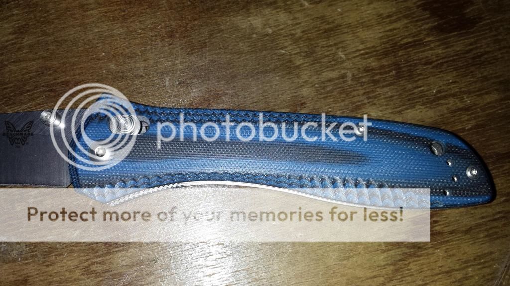 Blue/Black G10 Sculpture handle scales with blue barrel back spacers and all silver hardware.