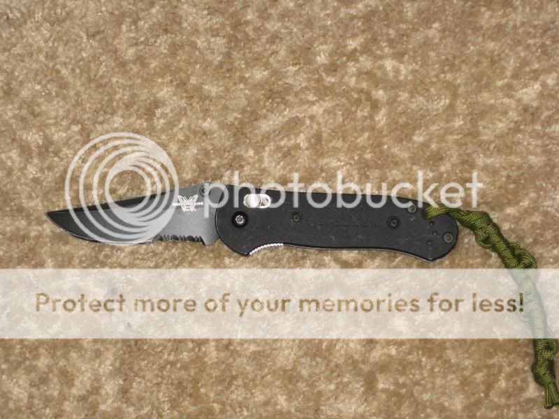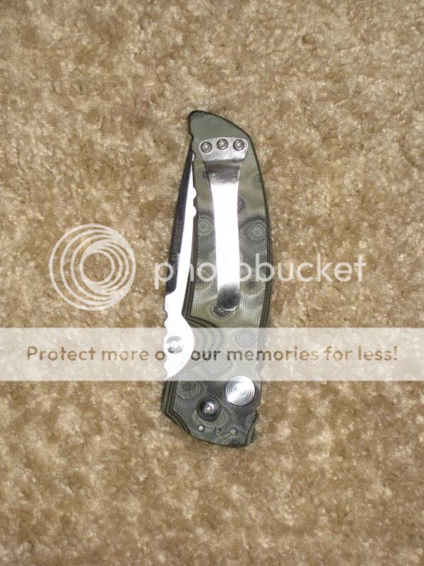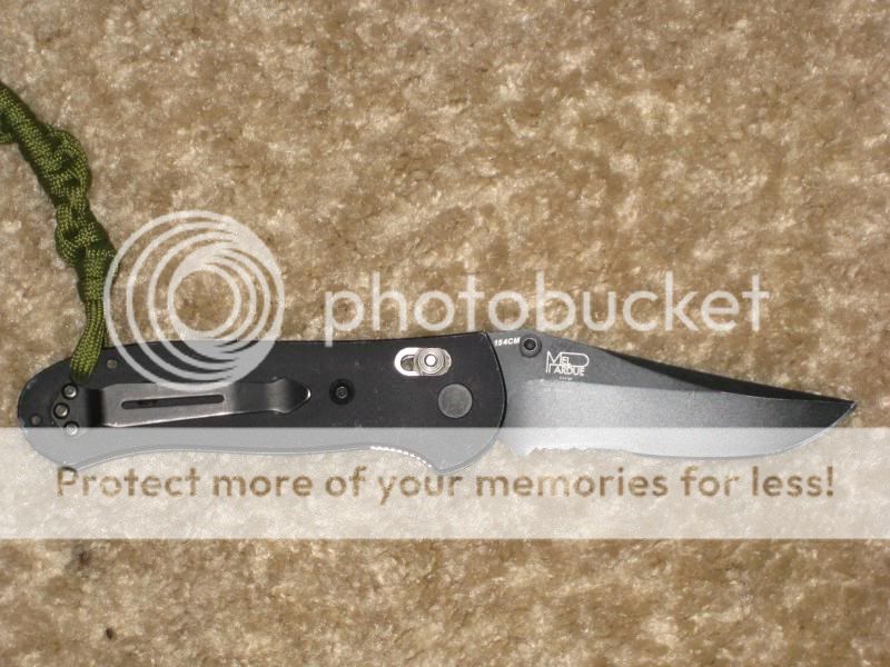This one comes sans box. It wears 154CM. I bought it in 2002 new. The pocket clip has been replaced with the phallic looking one BM is producing right now. Axis lock. Super tight lock up. Smooth action. No blade play. Perfectly centered. The only inclusion here can be seen in the fourth picture. Blade has been touched up with my Edge Pro and is hair popping sharp. Was $100, $90, $80