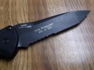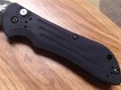 This Stryker auto is new in the box with all paperwork, and is a 1st Production run limited number 491 of only 500. I am selling this for $255.00 with free shipping. I can accept PayPal, but ask that you add 3% to the total to cover the costs or cashiers check or postal money order is also ok. Don't buy this knife if you cannot legally own it. The 9101 Auto Stryker features a push-button automatic mechanism with integrated safety. The blade is 154CM stainless steel with tanto blade design, partially serrated, and has a Black Cerakote blade finish. The handle is machined 6061 T-6 black anodized aluminum and also includes a reversible tip-up pocket clip. As always, includes Benchmade Lifetime Warranty.