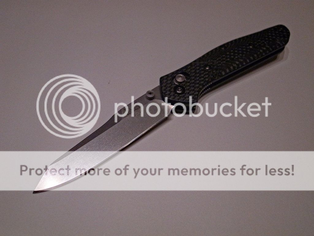Up for sale is my 940-1, Ive carried and used the knife for a bit and it is in excellent shape. The blade is centered with even grinds, no blade play and a smooth action. It has been sharpened and has a keen edge with no blurs, dings or other issues. There is a speck of paint missing off one of the standoffs and I have tried to capture that in the macros below.