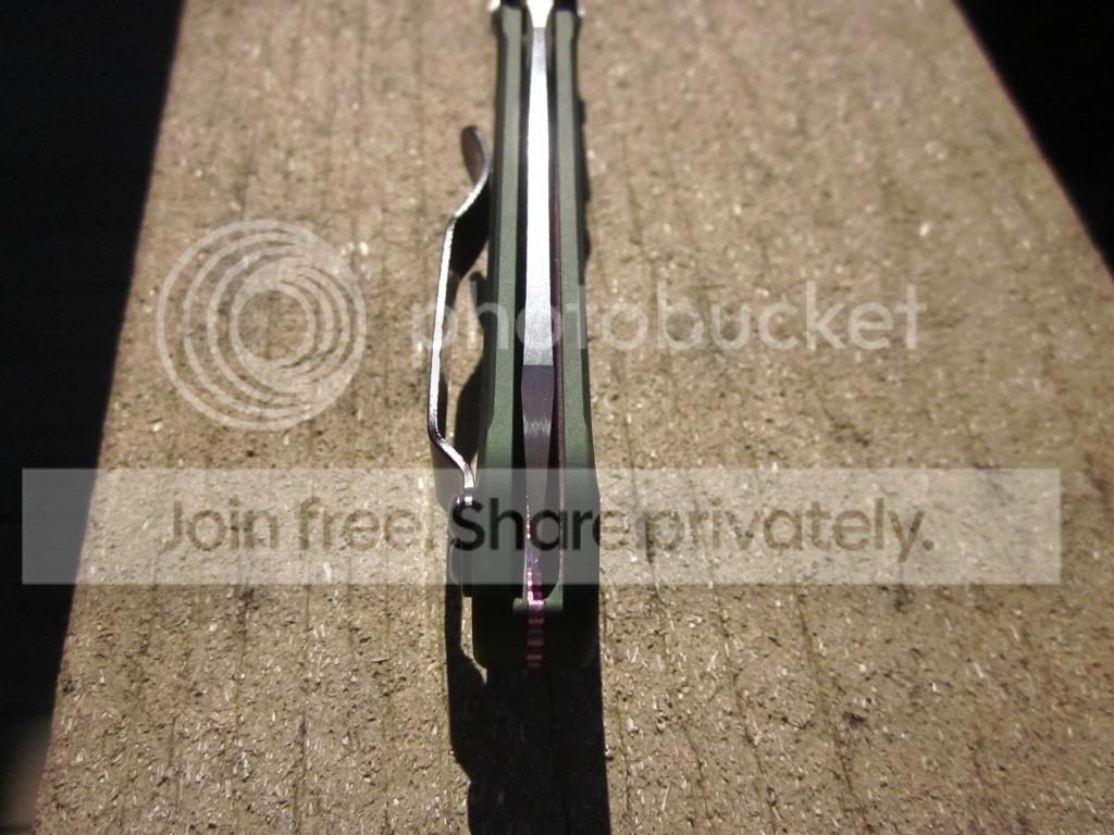 This one has a few scuffs here and there on the handle but the blade is pristine. The pocket clip has the usual wear around the sides. I can strip the clip or leave it like it is. Action is super smooth, lockup is solid and the blade is perfectly centered. I have the box as well.