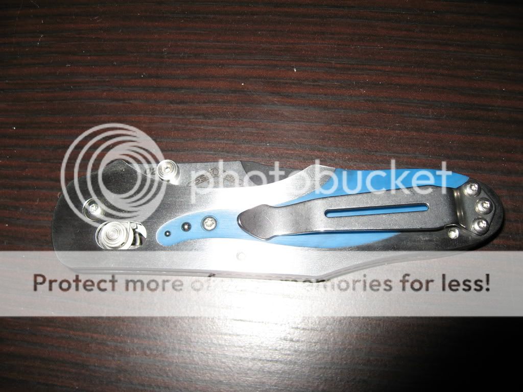 The handle is silver and blue. I have been unable to find any information about the knife on the web. I would post pics, but I am not allowed to post attachments.