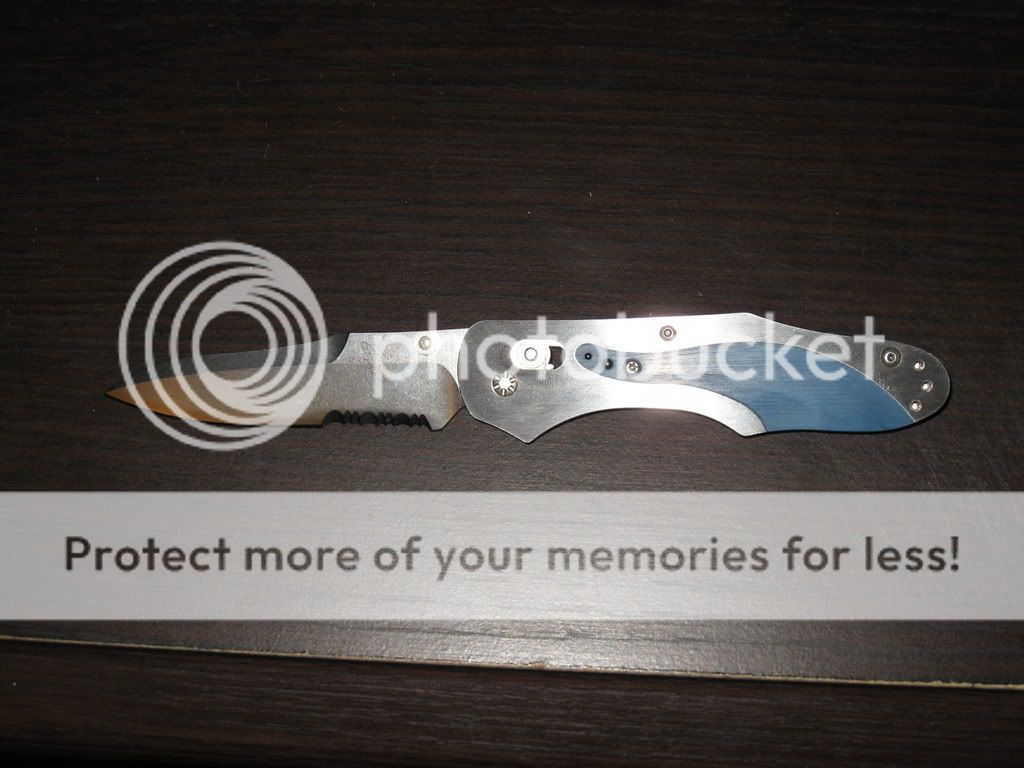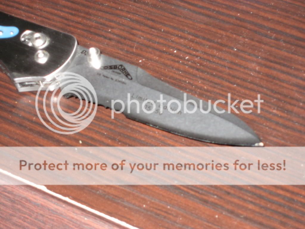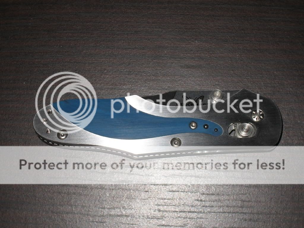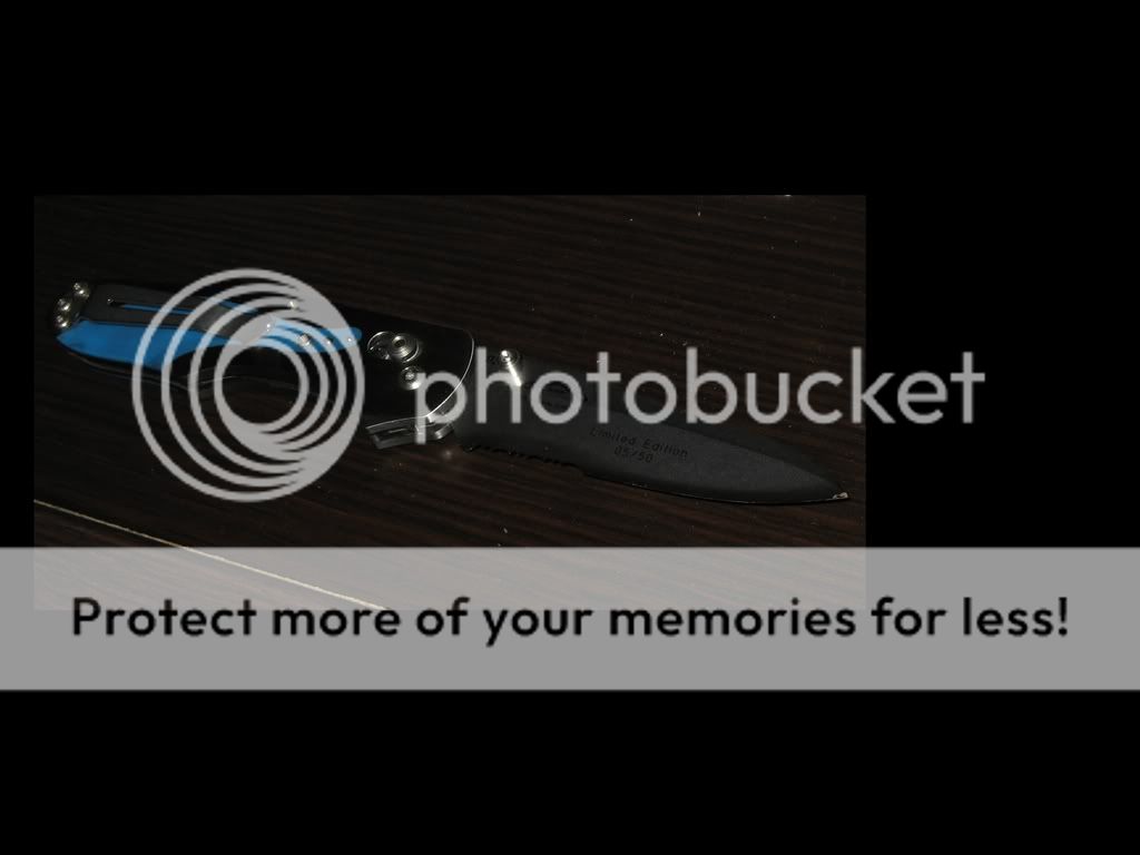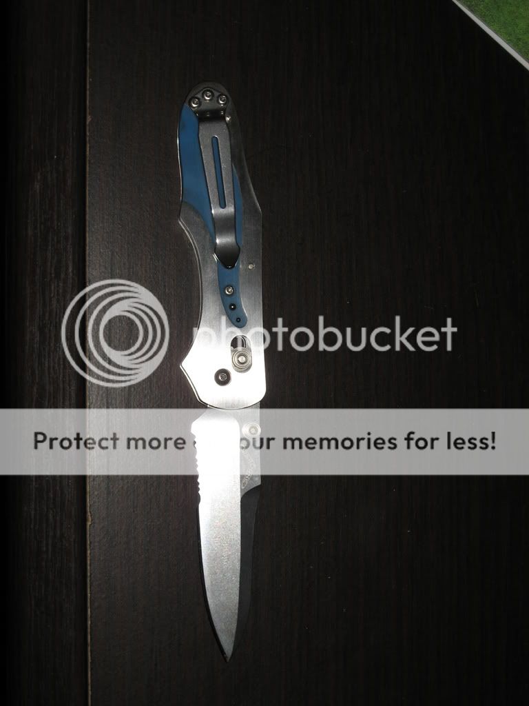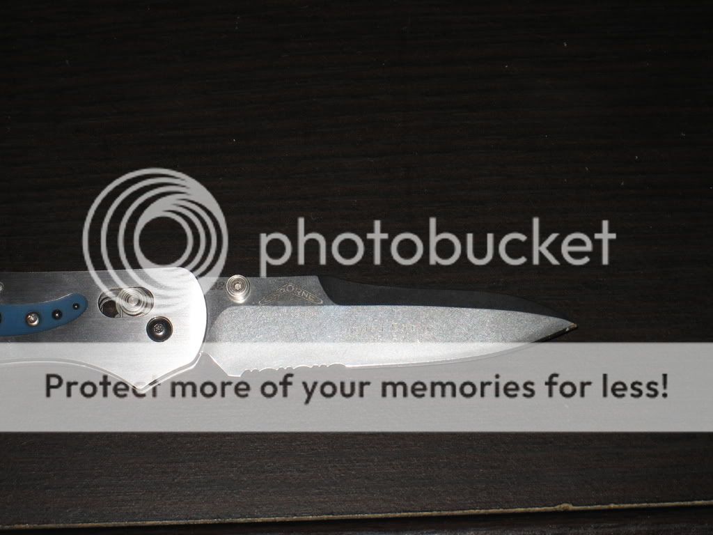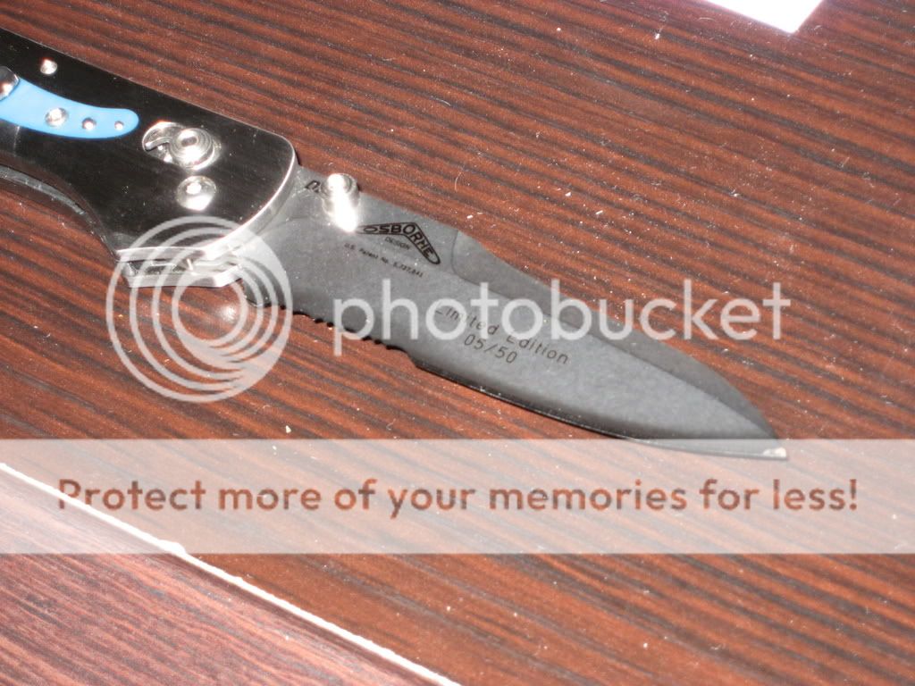 It is a Benchmade 960 with a partially serrated blade. It is D2 with "Limited Edition #5 of 50" written on the blade.