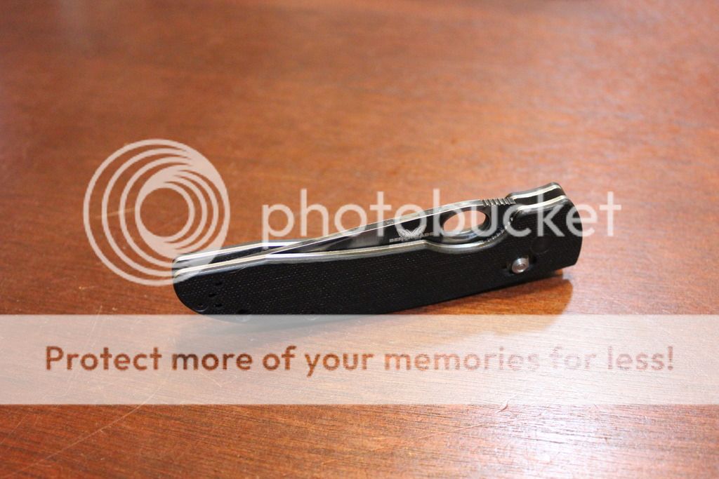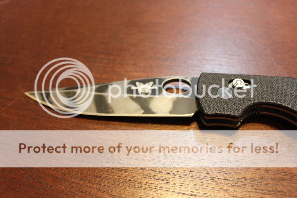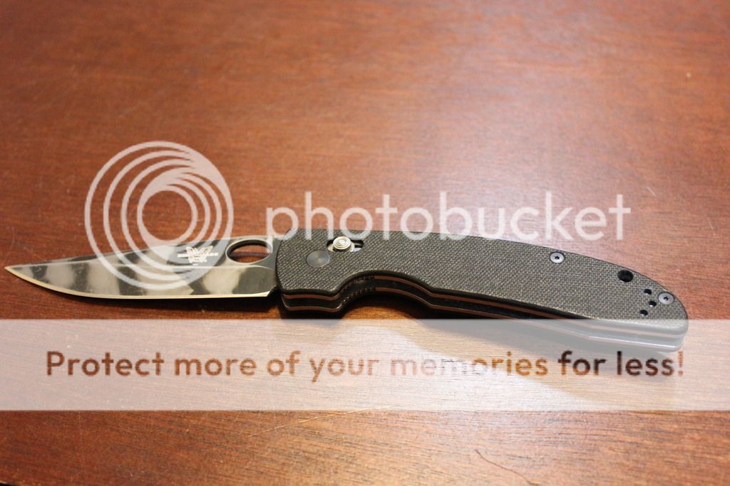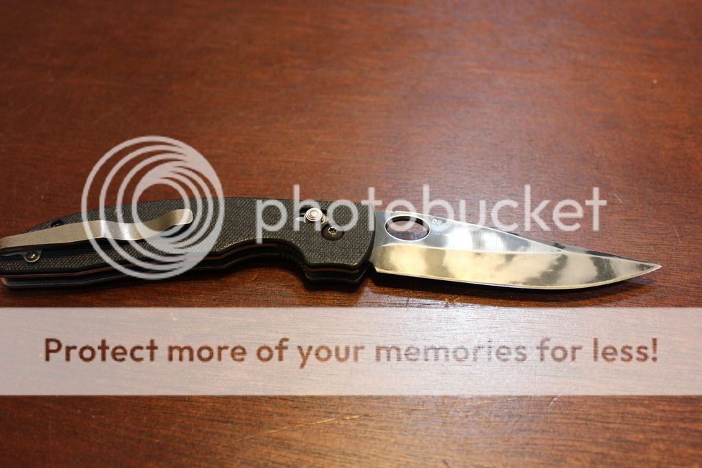 This is a user AFCK. I bought this used with the homemade tiger stripes. I have sent if off to Benchmade and the replaced the G10 and the washers to bronze. They came from the factory with plastic washers originally. I have put a mirror edge on this blade with edge pro and Shapton glass stones to 16K. It also come with the Ti deep carry pocket clip. I have to factory clip that will ship with the knife too. I have the box for this knife but will have to do some looking for for it, but it will ship in the original box.