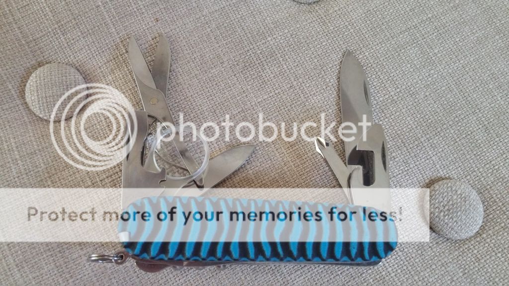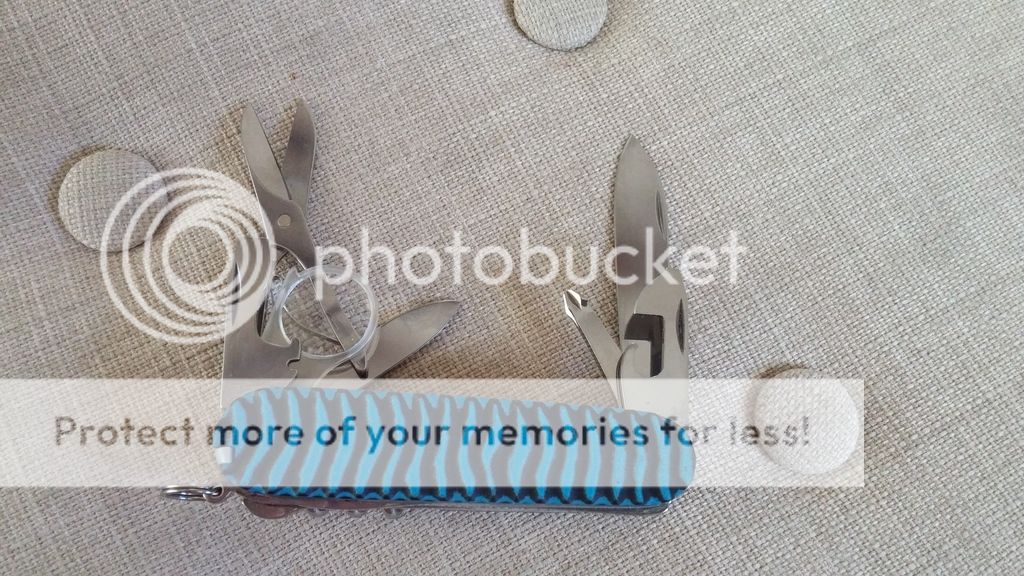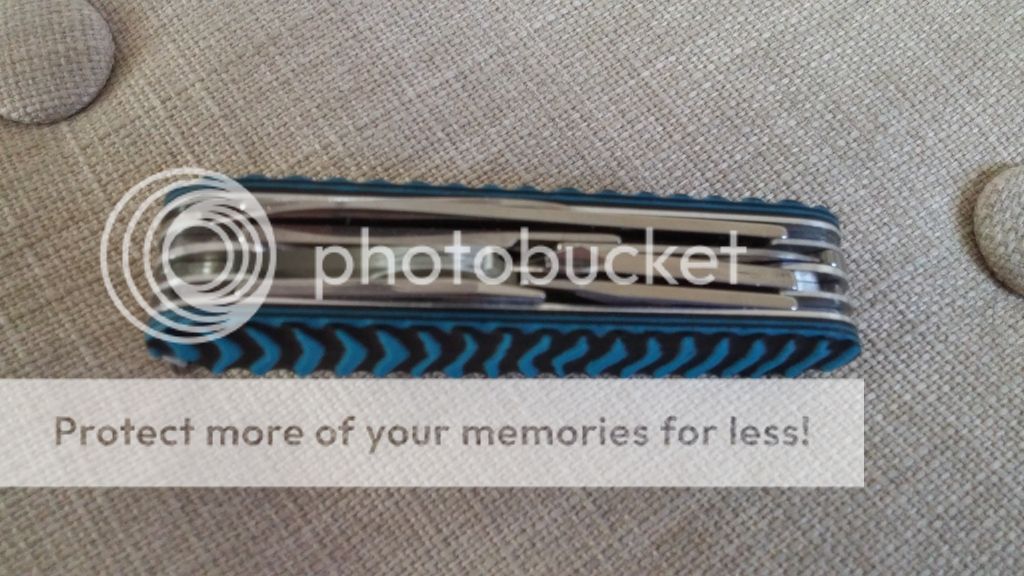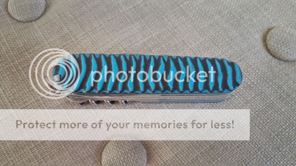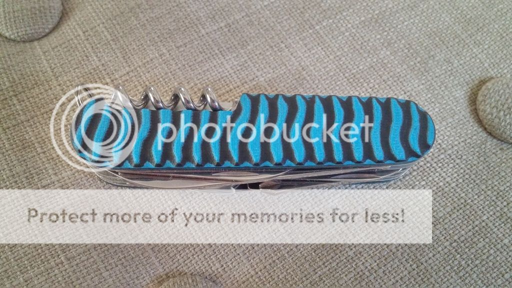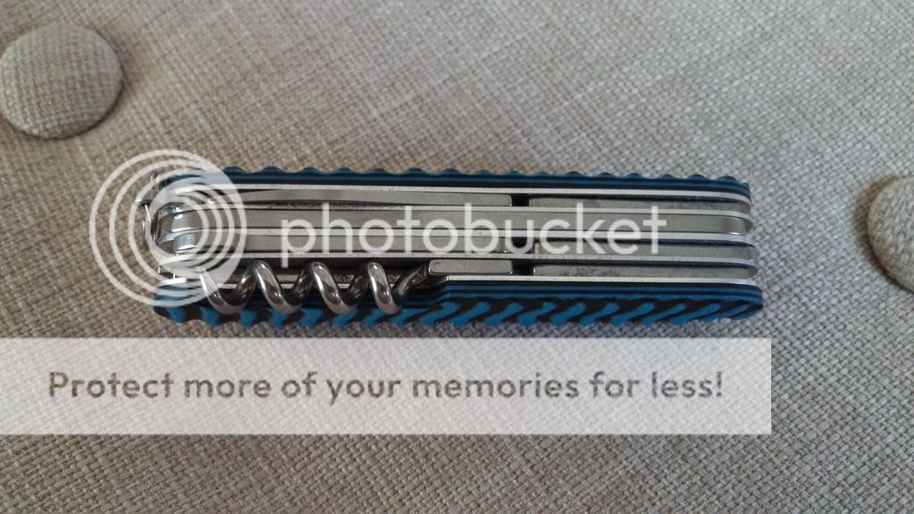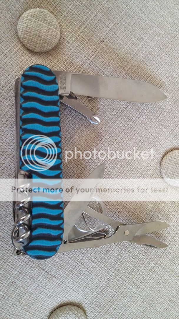 ALM Customized Victorinox Explorer- Carried a few times but in superb condition. Professionally customized by ALM Knives & Tools of Poland. Custom blue & black G10 handles. Very grippy and solid.