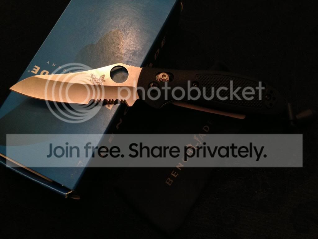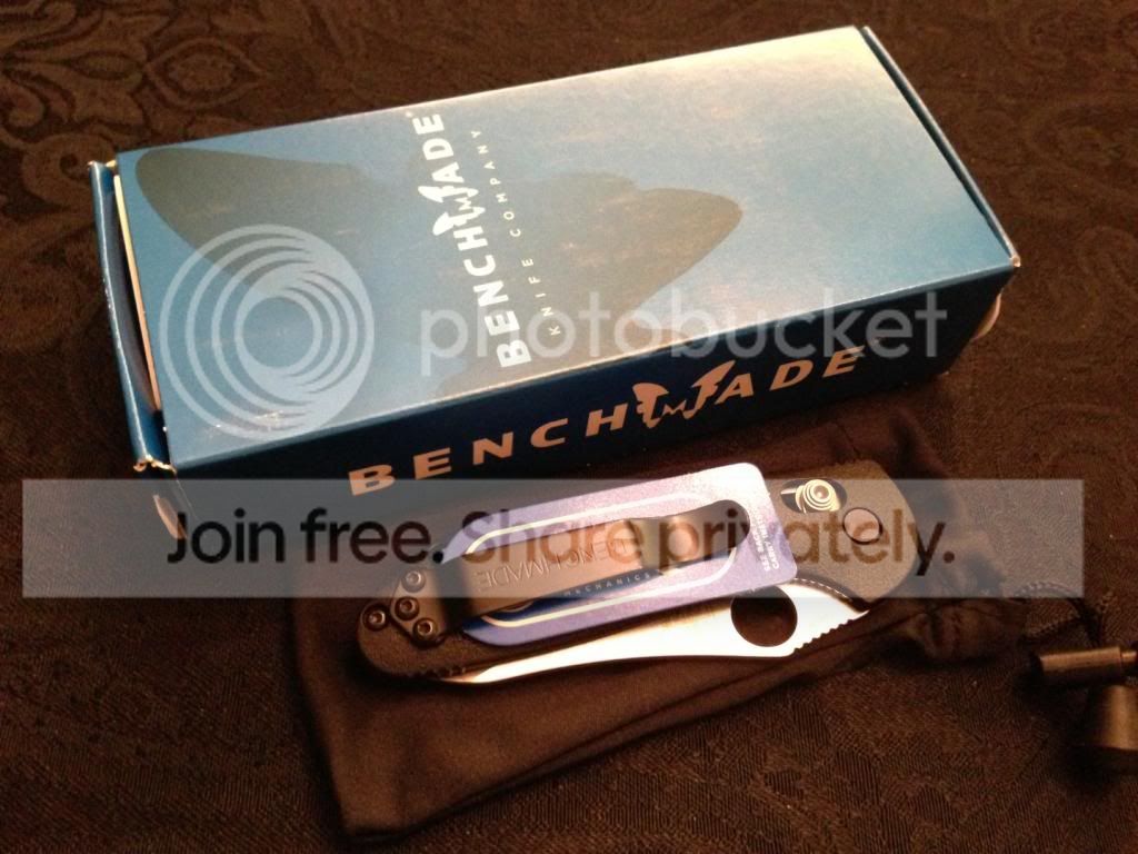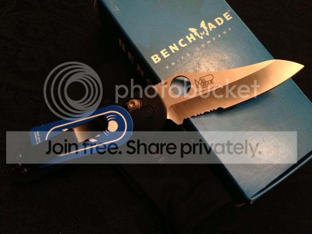 Benchmade Pardue Design Mini-Griptillian Combo Edge. This is also in pretty much new shape, I've used it for some paper but that's all. Great EDC knife.