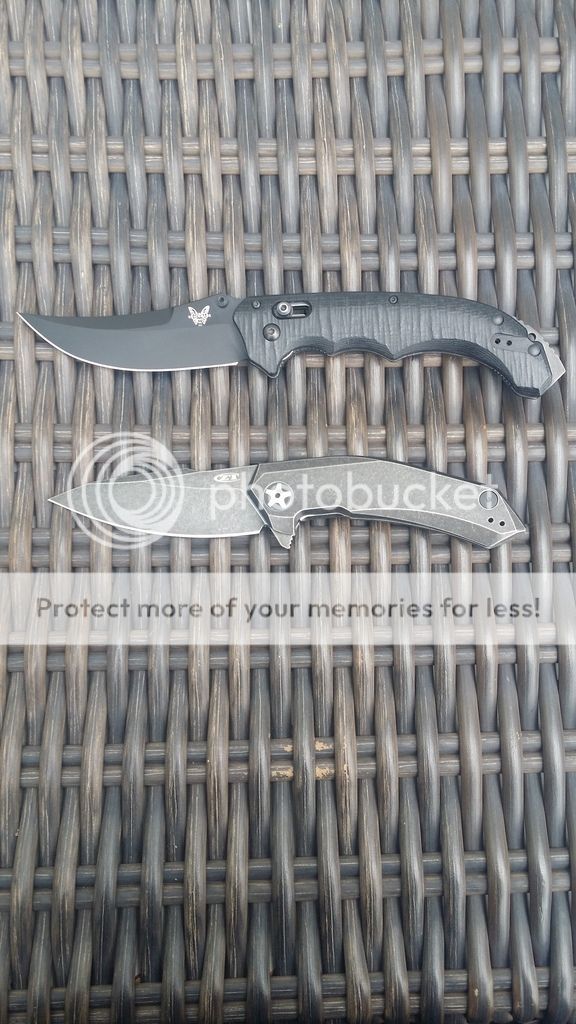Benchmade Bedlam- I've never seen a Bedlam like this, it's a black bladed, plain edge, non-auto. The non autos (IIRC) are only offered in satin/plain and black/serrated. Previous owner got a blade swap from Benchmade. This thing is so dang cool, the only reason I'm listing it is because I'd like to put the money towards something I'm hunting. $149