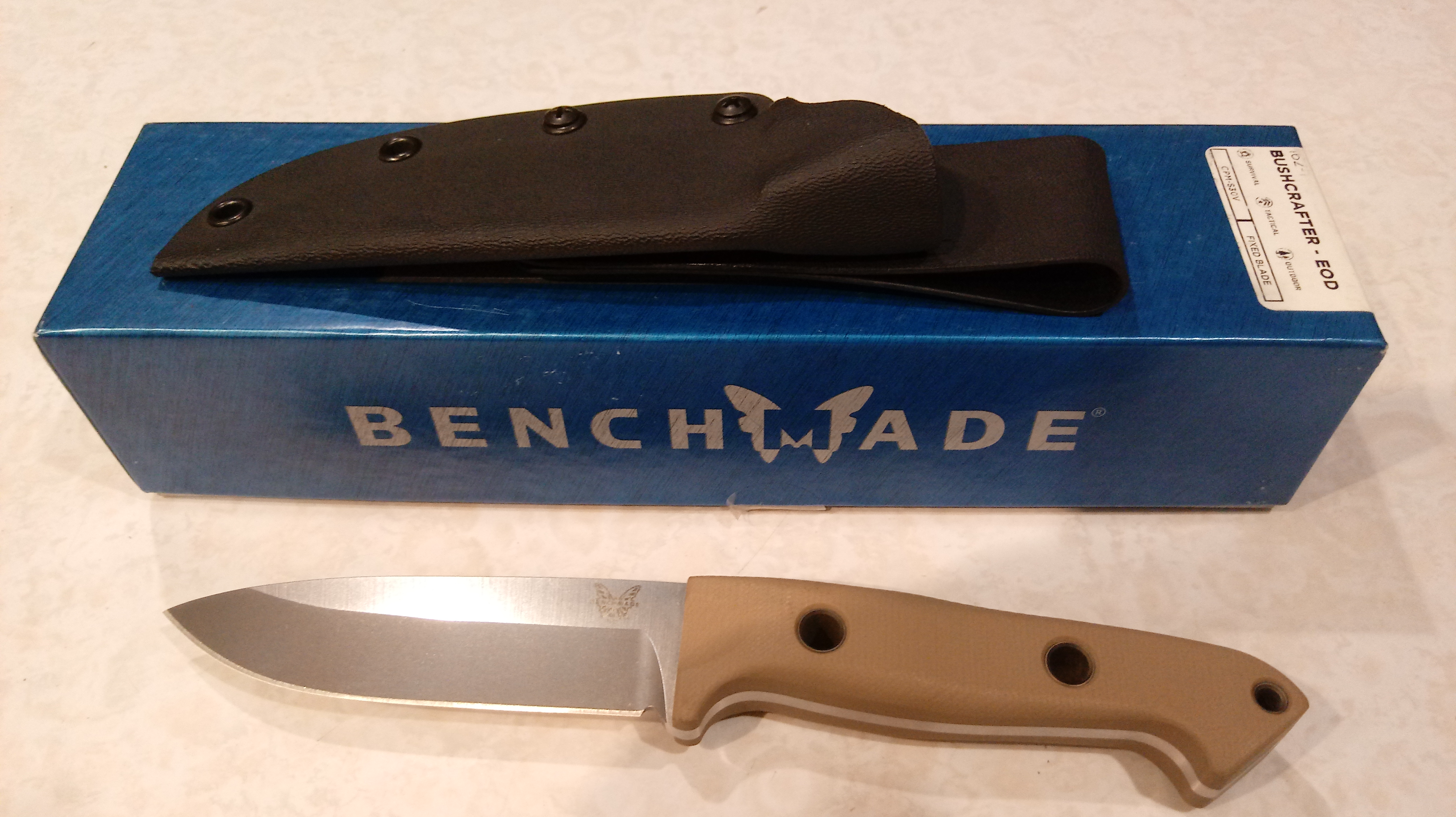 Bottom Line Gold Member Feedback: +99 / =0 / -0 Joined Oct 24, 2017 Messages 633 Jan 1, 2018 #1 For Sale: Benchmade Bushcrafter EOD, unused. SOLD including shipping and Paypal G&S fees. CONUS only. No third party shippers. Please know your local laws before purchasing. Must be atleast 18 yrs old. Last edited: Mar 11, 2018