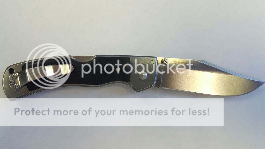 LNIB Cold Steel Mackinac Hunter (54FBT), thumb stud version, AUS8. I replaced the horrendous stock scales with very nice aftermarket scales from sketchen -- polished black linen micarta. Theyve made the knife quite the looker, IMO. Steve does outstanding work. Very well centered, no blade play at all. Never carried, factory edge. Box, paperwork, and factory scales included.