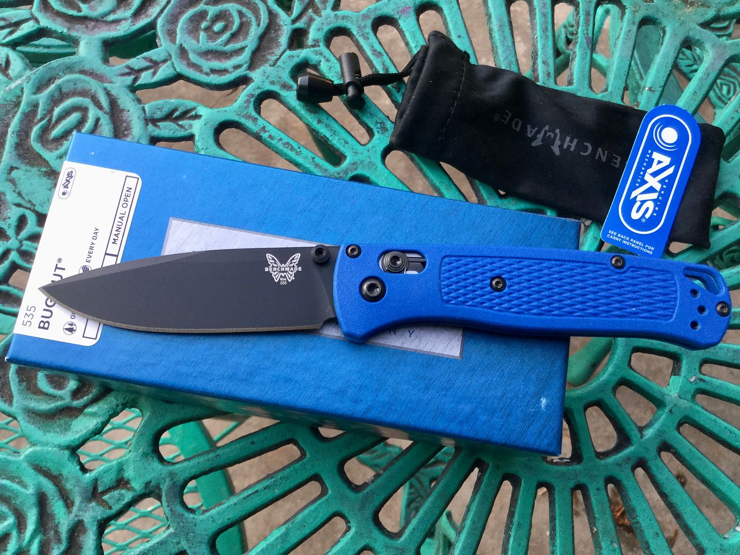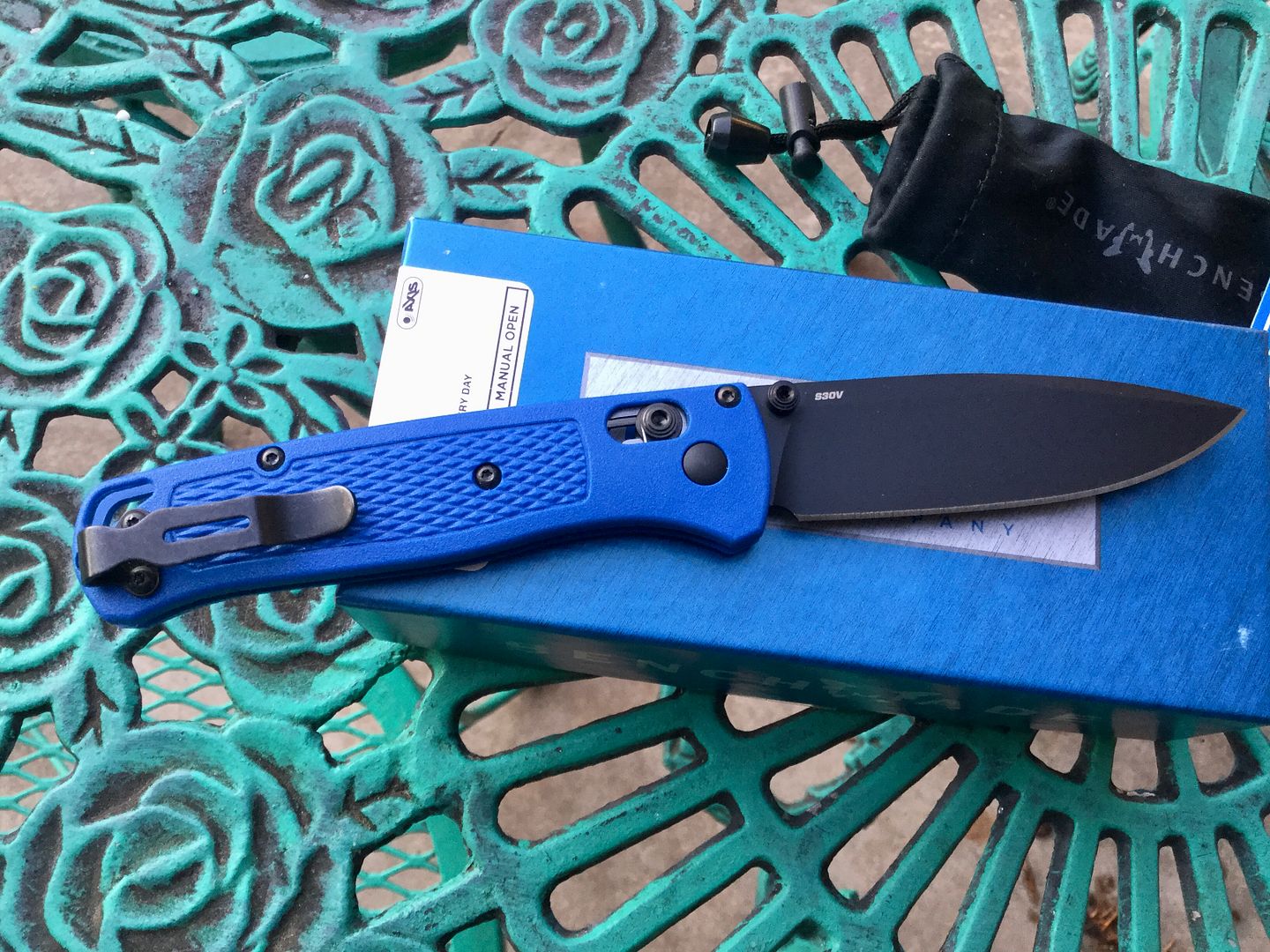First is a new Benchmade Fact 417. Great blade and super sharp S30V. $140 shipped in the USA. Here I have a new, unused Benchmade Bugout. Blue handle with a black S30V blade. —SOLD—