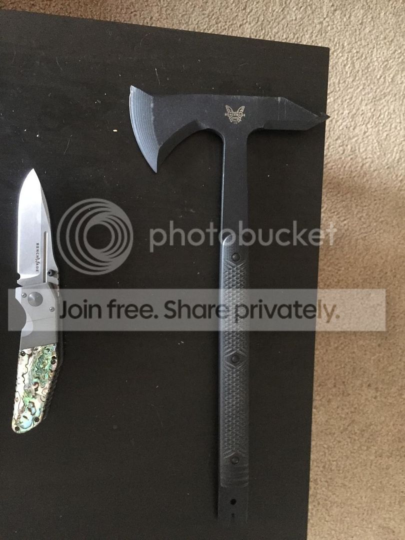 -Benchmade tomahawk, $250.00. Used, comes with holster. it has a chip on the edge. SOLD