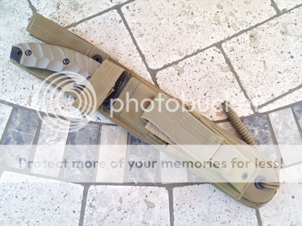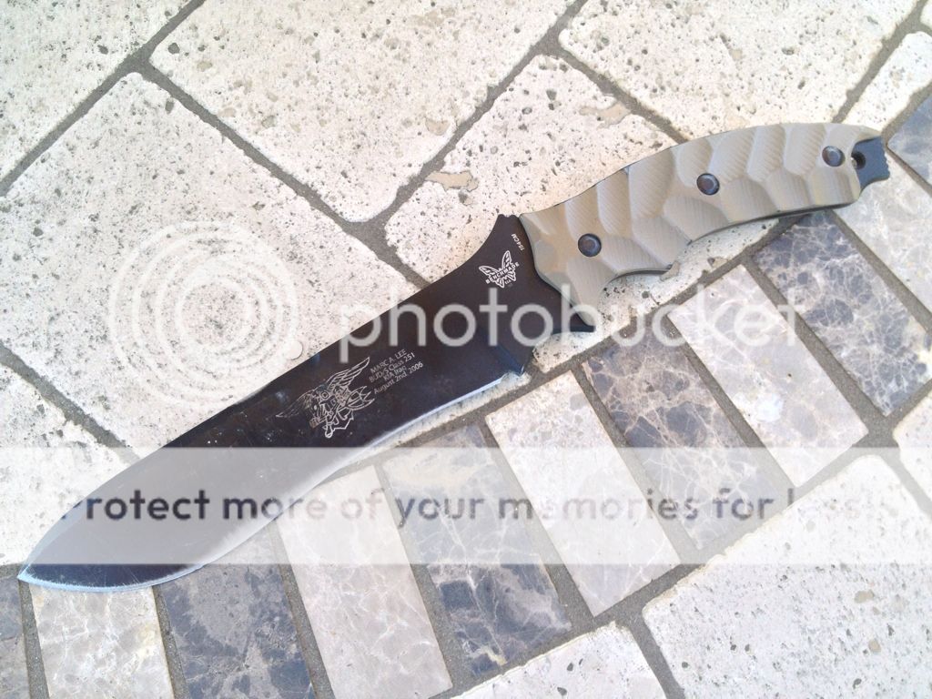 I have a used Benchmade Killian Design Marc Lee Glory Knife. Has a few chips on the edge shown in the pictures below. Used it a few times to baton and chop threw wood. Has a ton of life left in it. Comes with molle compatible sheath.