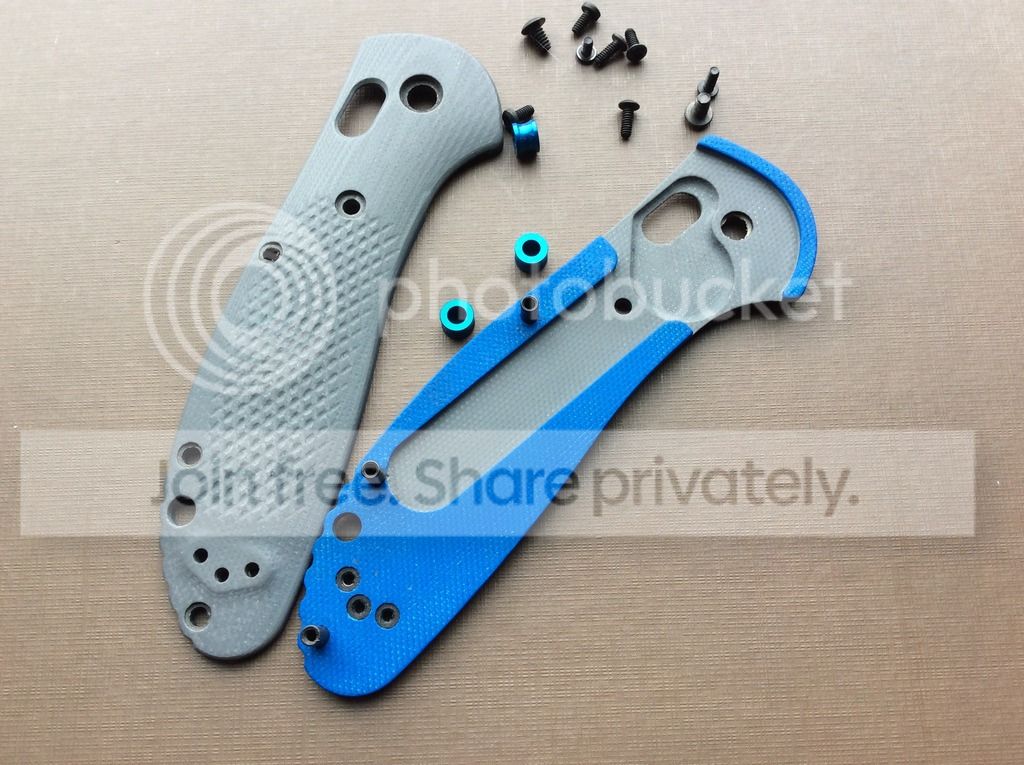 comoha Feedback: +550 / =0 / -0 Joined Jan 12, 2006 Messages 6,237 Mar 26, 2016 #1 Benchmade Large Griptilian Grey/Blue G10 scales with blue titanium standoffs. Fits the large Benchmade Griptilian. SOLD Last edited: Mar 26, 2016