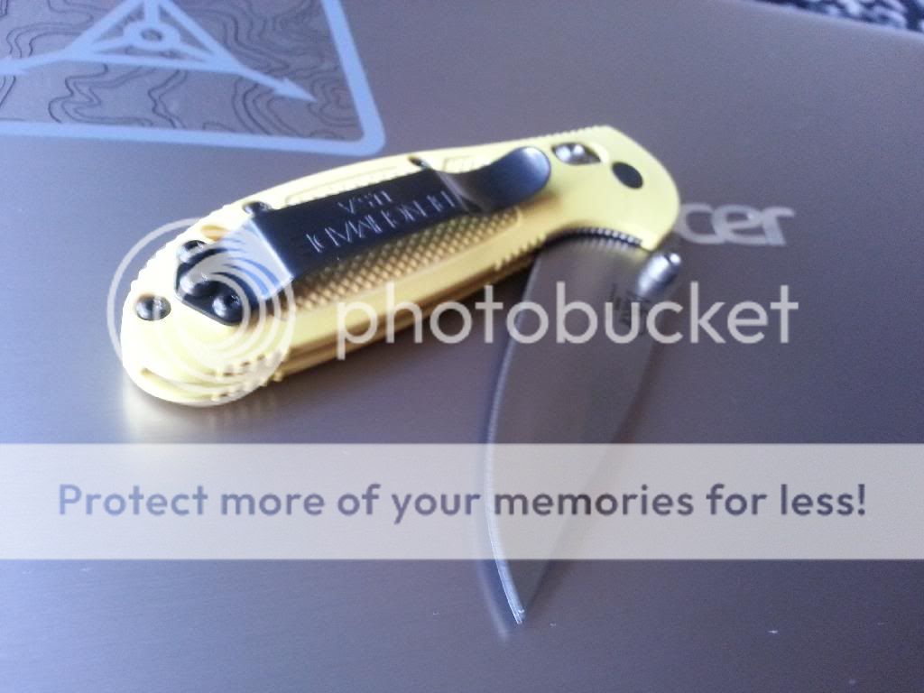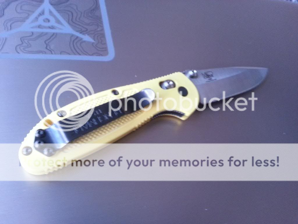 Up for grabs is a Benchmade Mini Griptilian in Yellow w/ black oxide clip