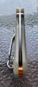 Jade Wilkins scales with an orange aluminum backspace. Knife is centered well, may favor the clip side just slightly. I have the pivot tightened to be a little tighter so it doesn’t drop shut, because I like the lockup pretty solid.