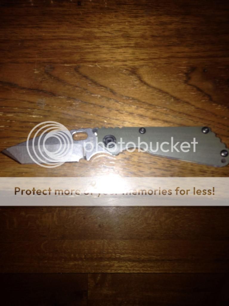 Second is a Strider SNG concealed carry tanto. The lock side has the tiger stripe and It's one of the older models so it doesn't have the blade steel marked but I was told its S30v. The blade has been sharpened in a wicked edge and is really sharp. $350