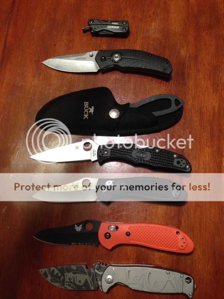 Hello everyone. Today I'm clearing out some of my collection that has accumulated and hasn't been carried and/or used in a while. Pic's below with descriptions in order from top to bottom.