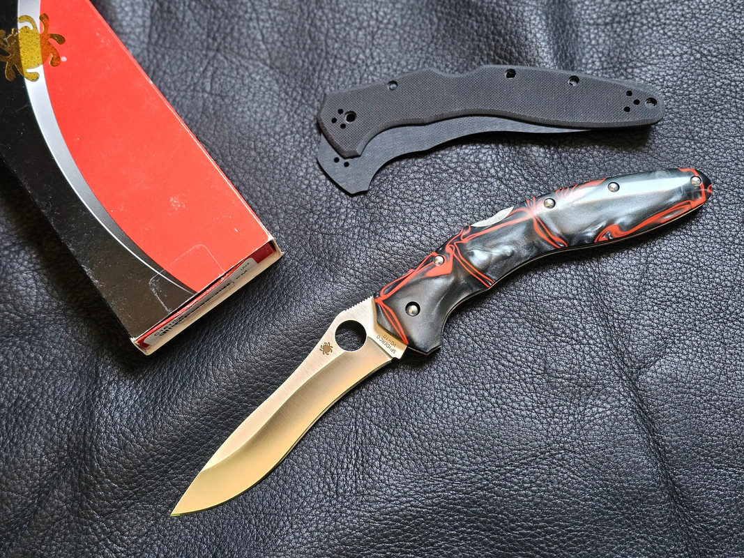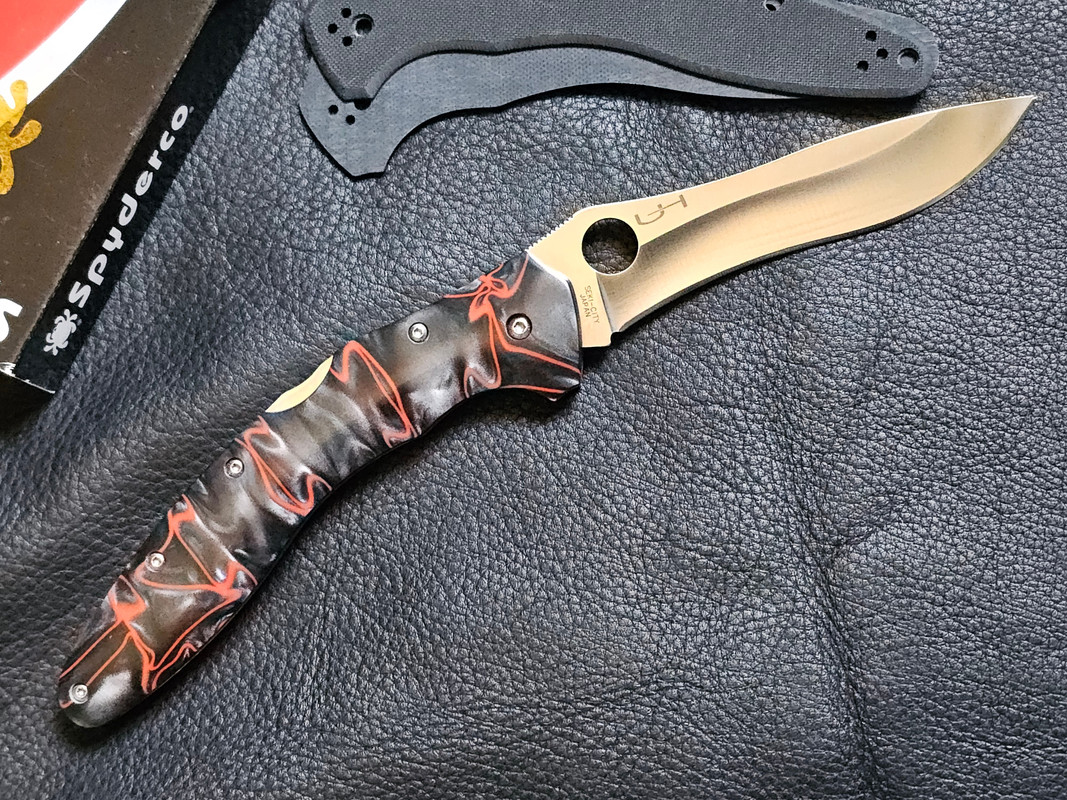 Spyderco Ulize - Aftermarket Lava Kirinite scales (not drilled for clip, but it would be easy to do if you wish). Includes original packaging, original scales, clip and screws. PPFF SHIPPED: $225
