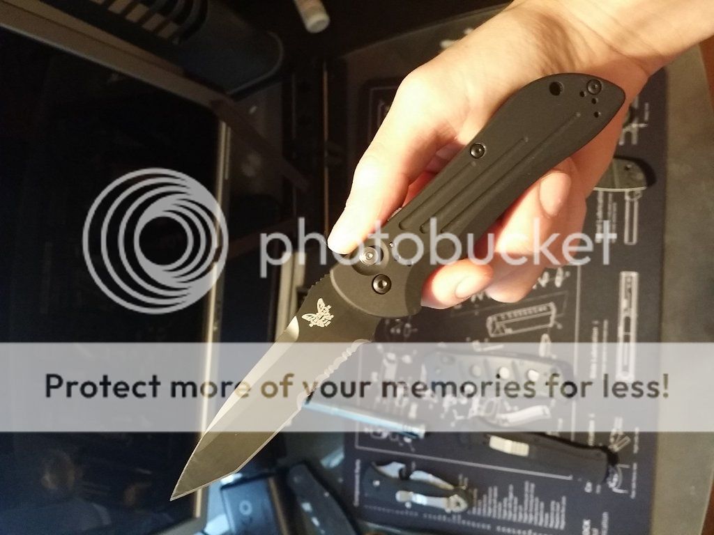 Benchmade Auto Stryker. This is the newer version with the bigger button. 2nd Owner. I've used it to cut up cardboard for my woodstove but that is all. $175 Shipped Paypal