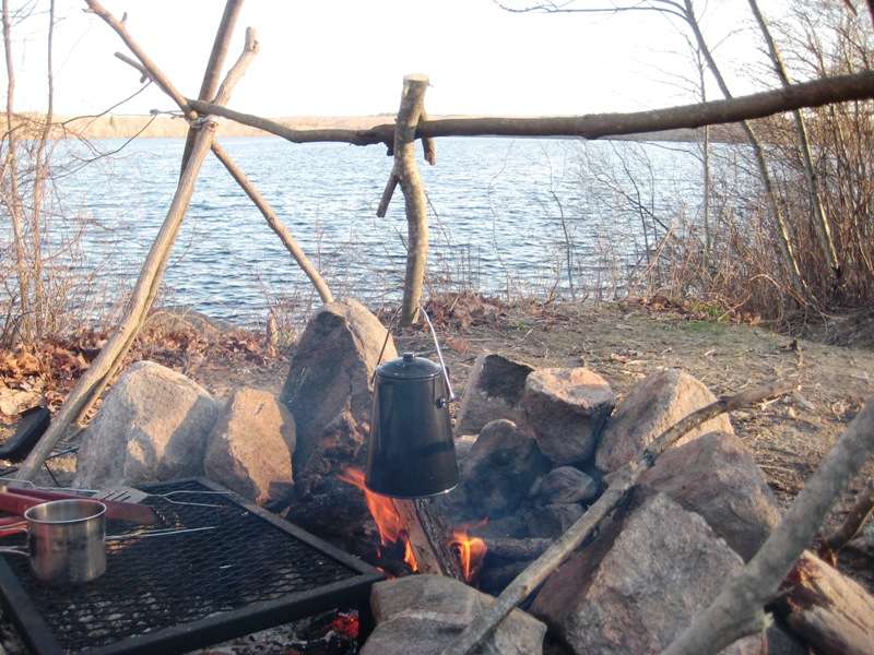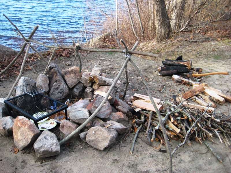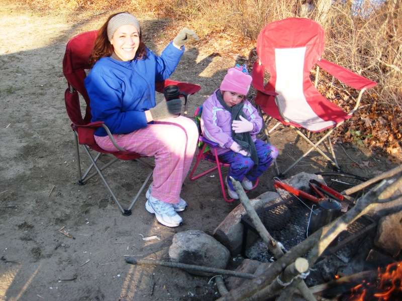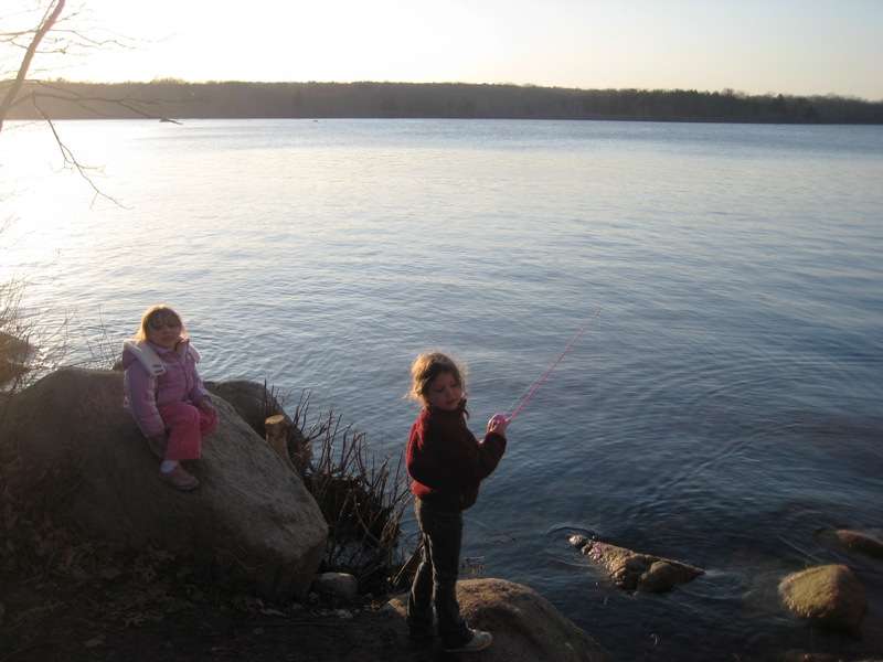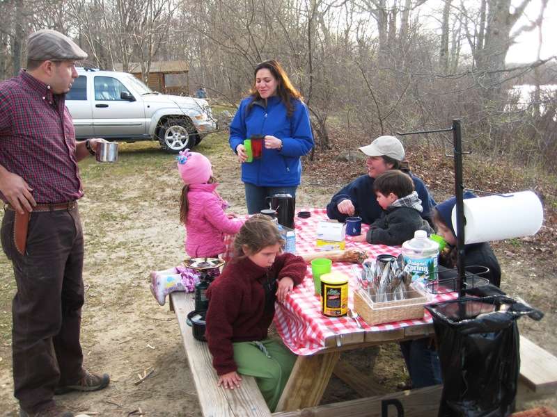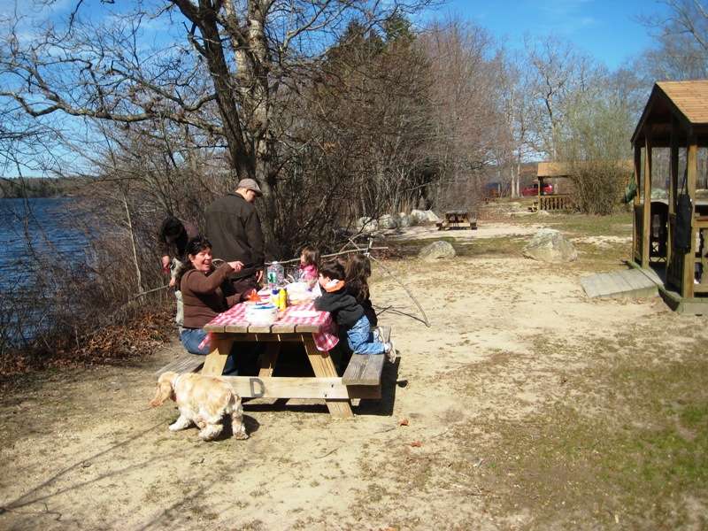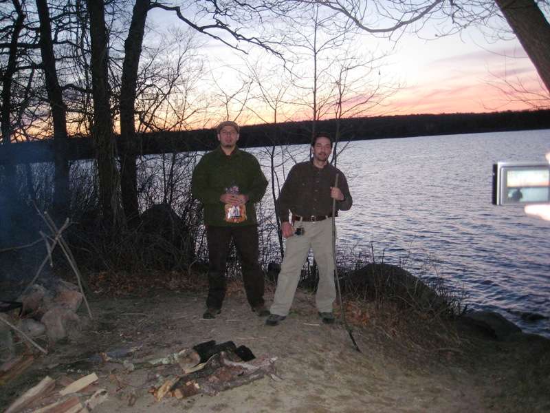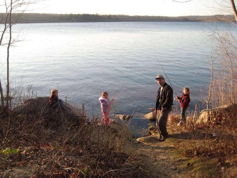 I can see it getting way too crowded during the summer. Luckily the cooler temps this early in the season kept it fairly quiet. Since Marcelo and I had our families we opted for the cabins. I wasn't thrilled about this at first, but it really did make a difference with the wives and Children. The cabins have 2 bunk set ups, no mattresses ofcourse; fairly decent sized. Probably abit crowded for Marcelo, his wife, and 3 kids; but plenty of room for my wife, daughter and I. I brought my hammock, in hopes to sleep in that, but the lack of trees on our site made it impossible. The camp site was on the south shoreline of Watchaug Pond. It is known to be pretty good Bass lake, as well as trout on the Northern end.