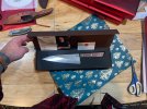 Thanks CMeton Boss Titanium frag pattern with Alien textured pattern w/clip same style (minus frag). Natural Ti screws, Natural Ti. Backspacer. Also polished the washers real well and crazy smooth.