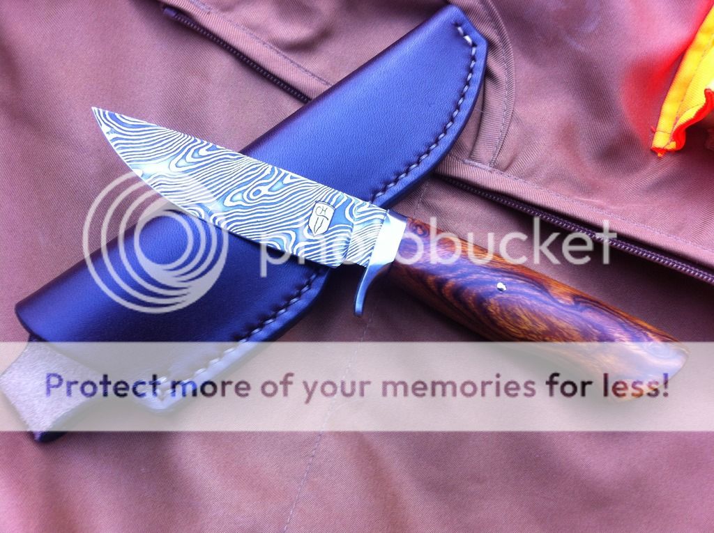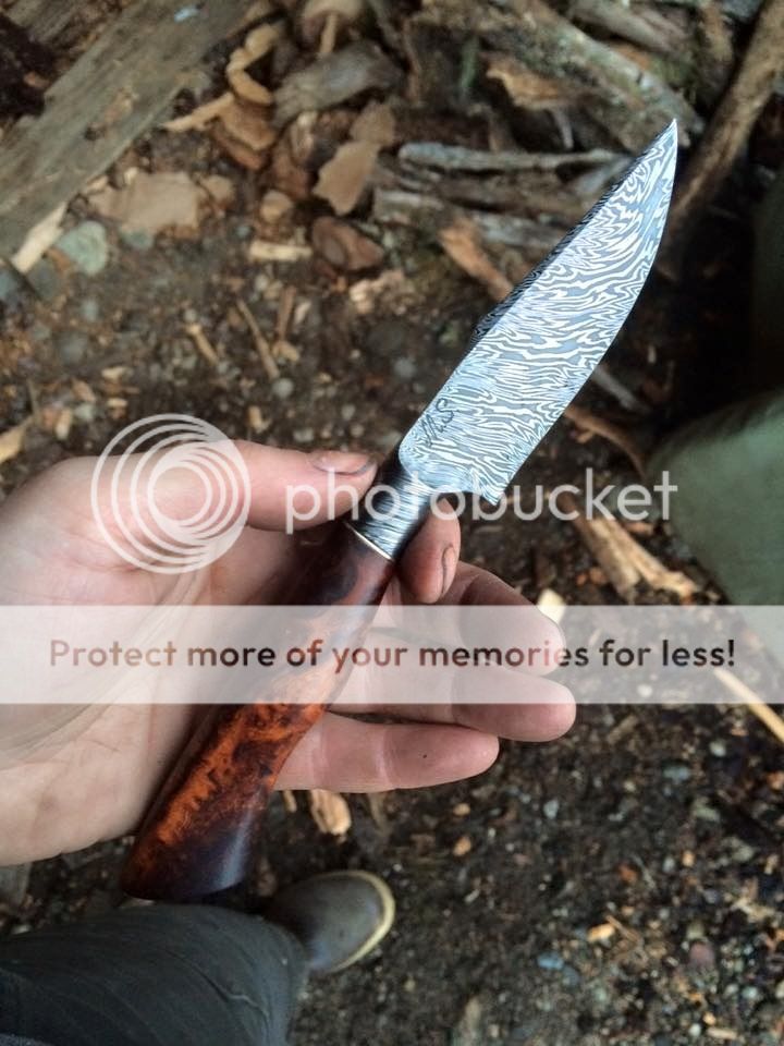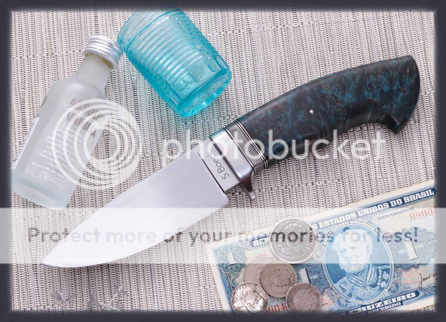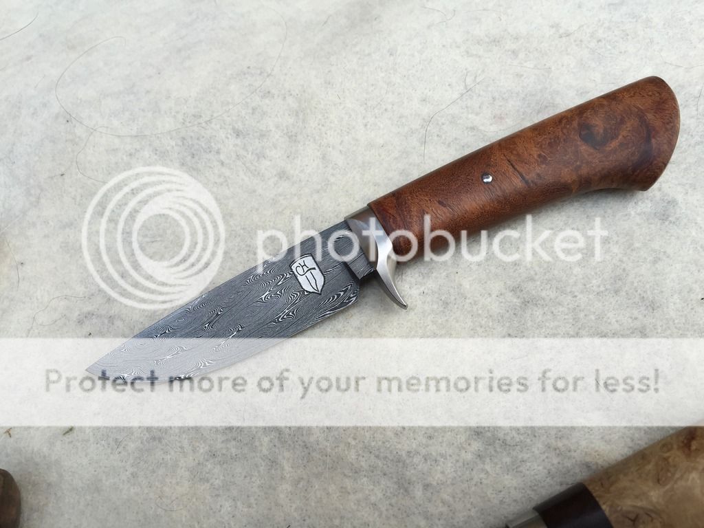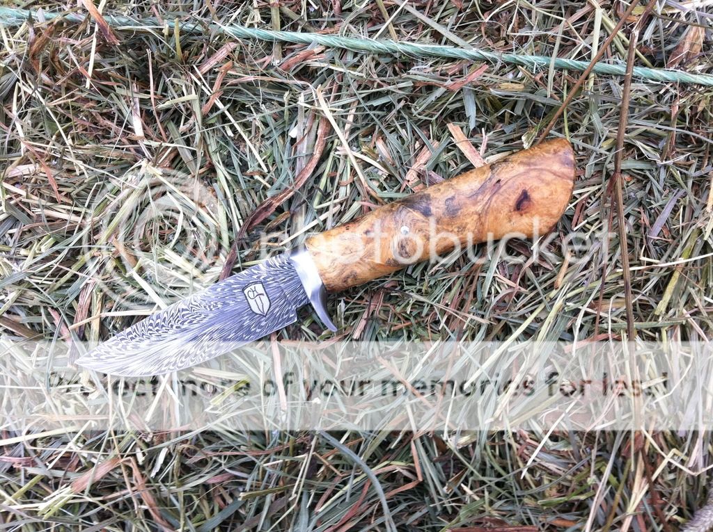 3. And a simpler version of number 2 for the K.I.S.S crowd with some cool stabilized dyed maple burl. It may not be as fancypants as some of the others here, but I'd rather stick this one in a deer: