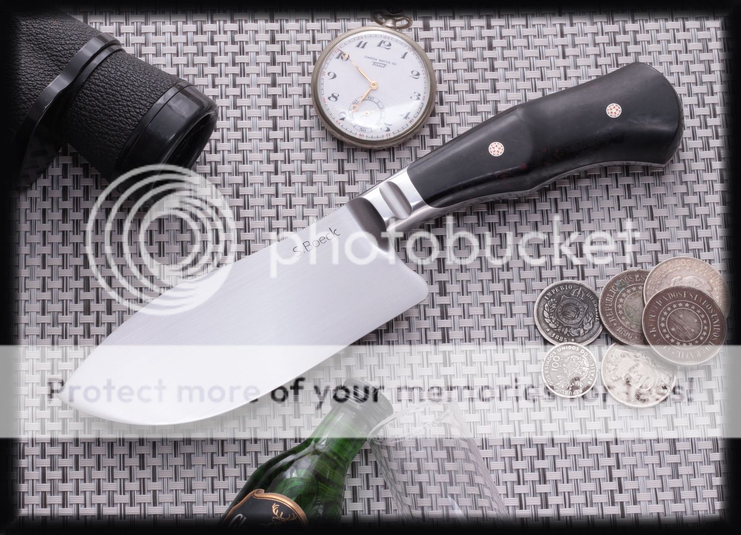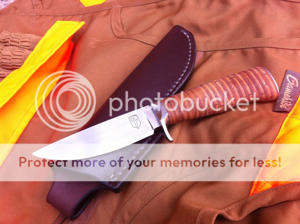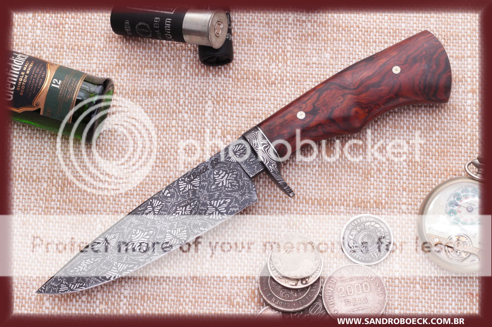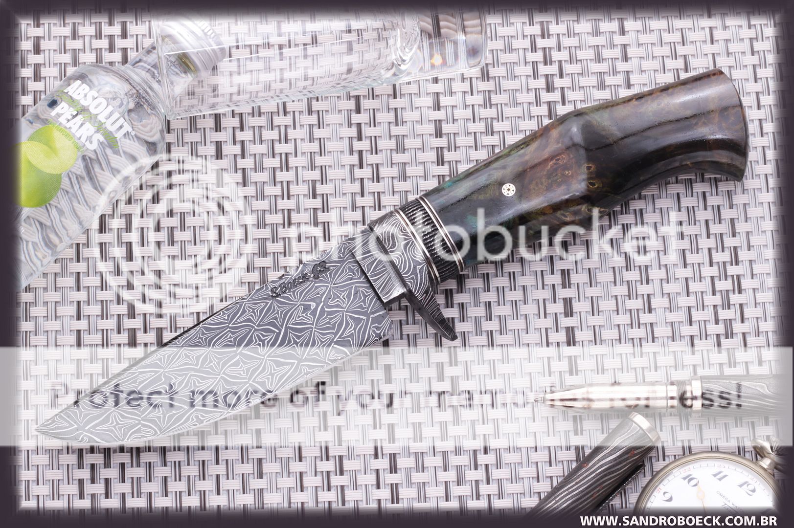3. And a simpler version of number 2 for the K.I.S.S crowd with some cool stabilized dyed maple burl. It may not be as fancypants as some of the others here, but I'd rather stick this one in a deer: