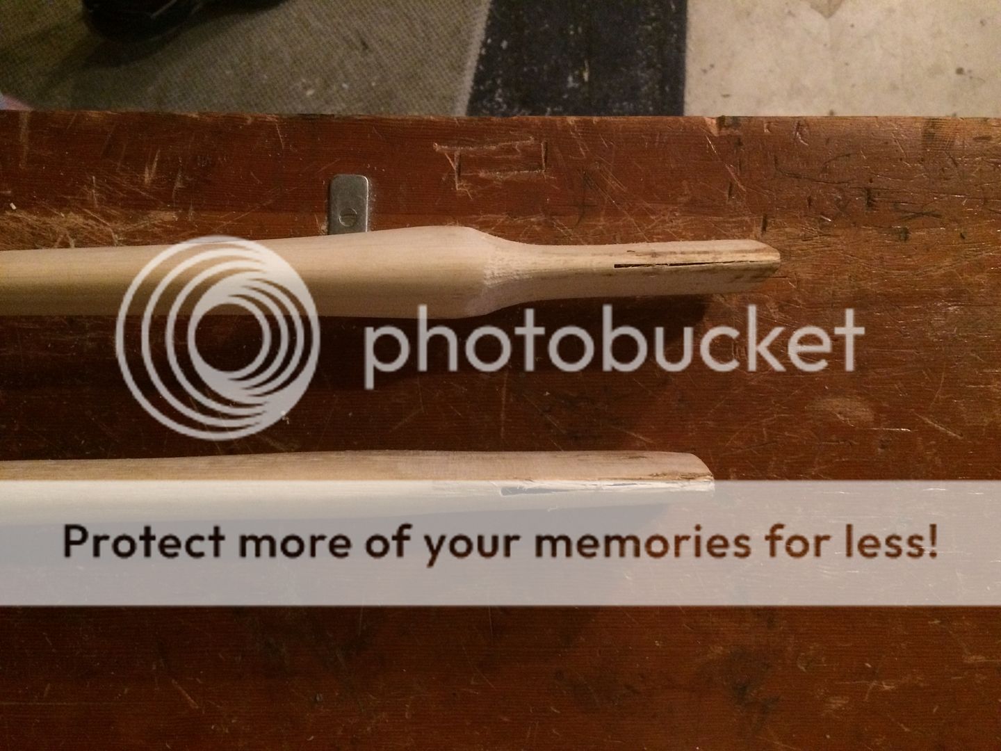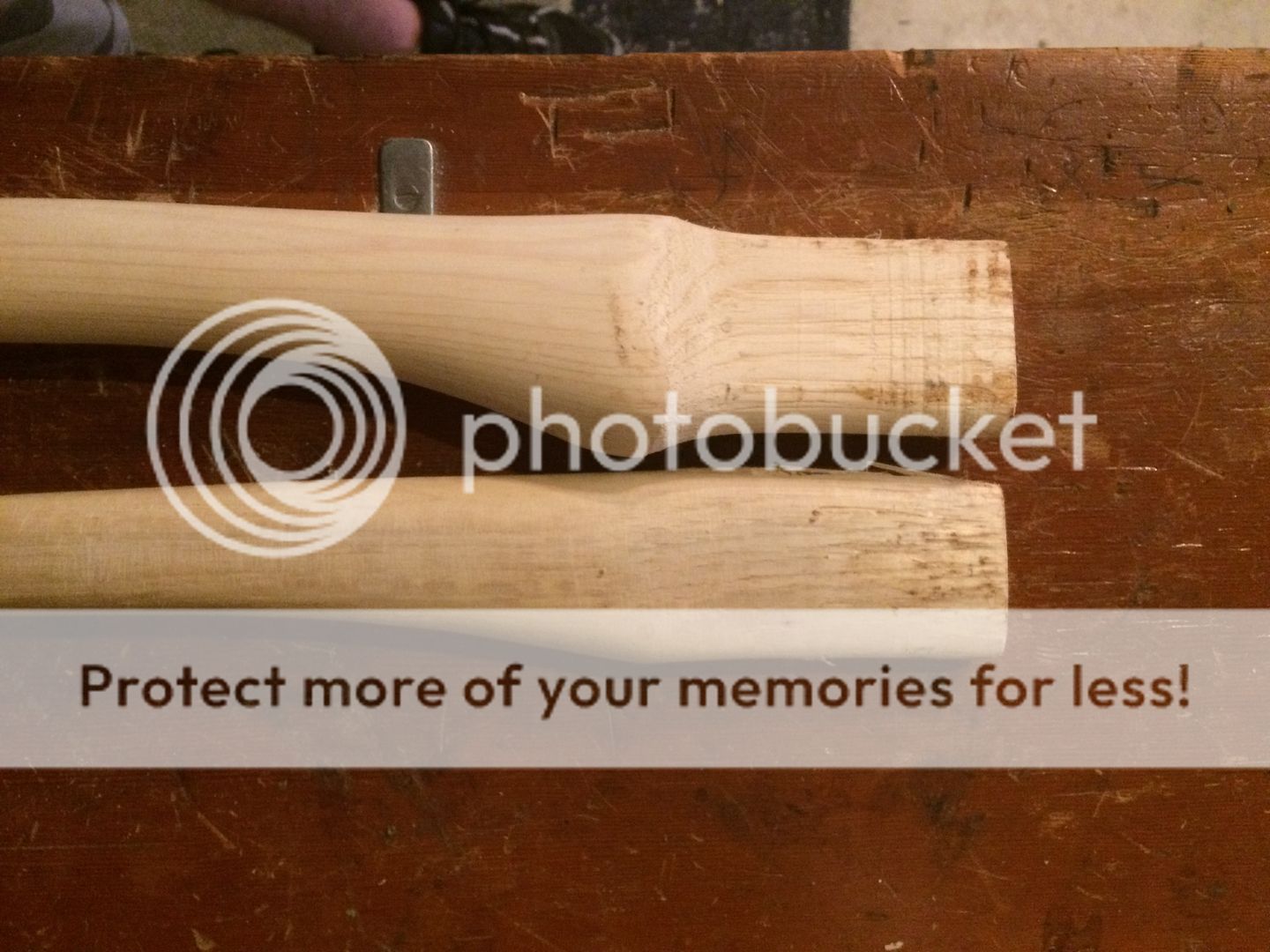 I think I'm gonna order a couple octogonal ones tomorrow for down the road, but I did find a link handle at my local store so that should get me back chopping firewood for the next few days. The shoulders on the handle aren't really existent, but it was there last one and I was dying to practice hanging my first axe so I picked it up.