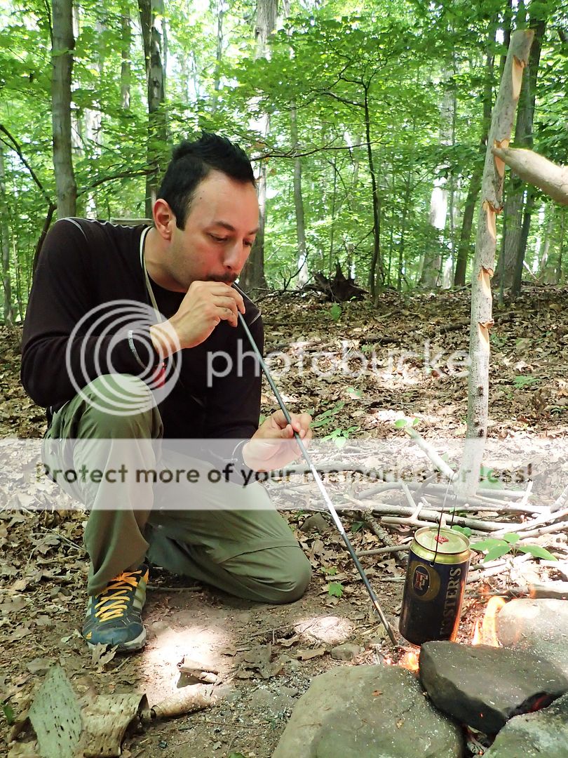 I stole this idea from Patrick Rollins- Arrow shaft used to blow direct oxygen into the coals.
