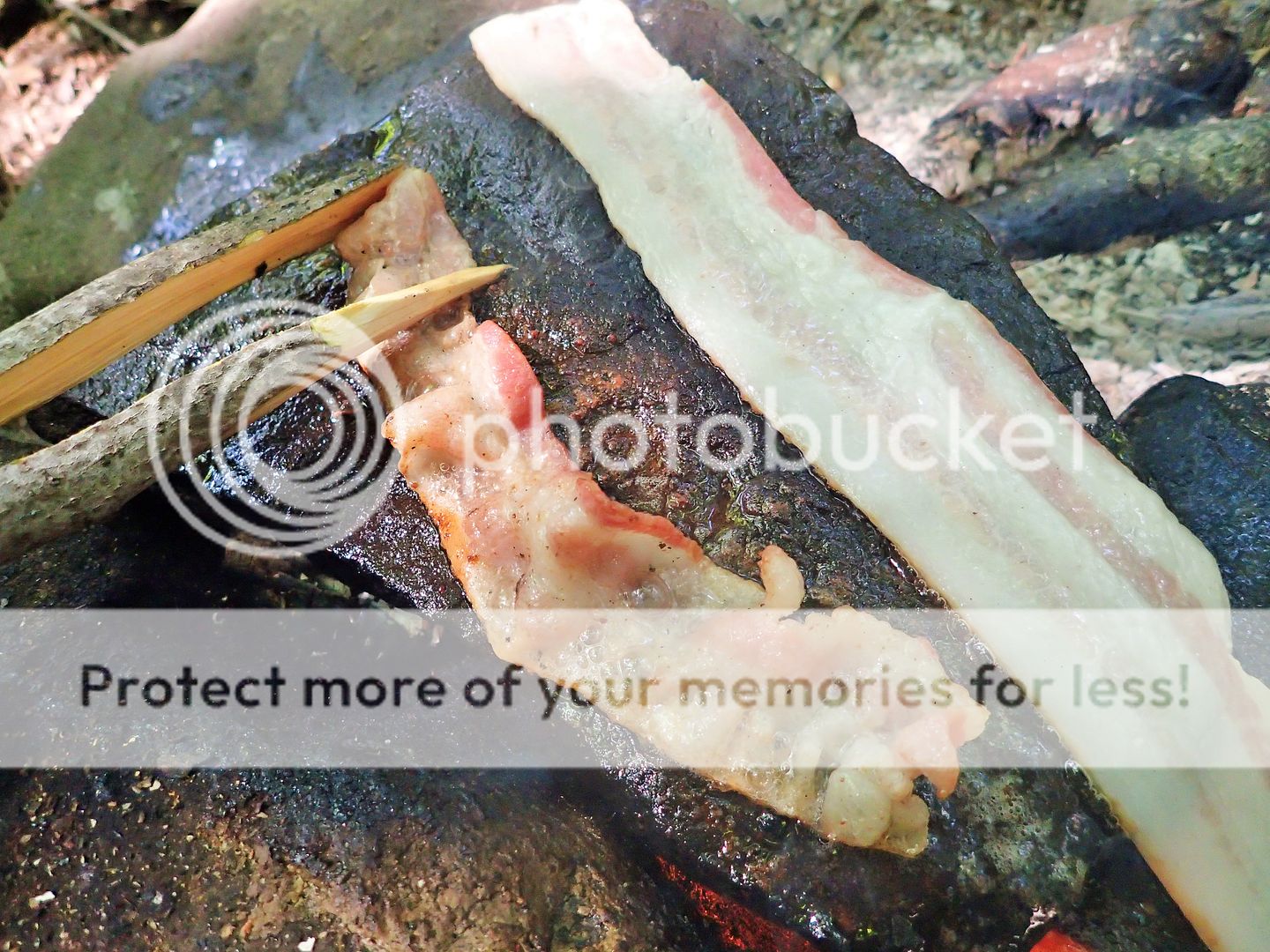 After about 30 min, the rock fryer is ready for bacon