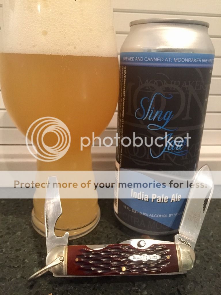 Well I had an outstanding surprise package in the mail yesterday . Inside was a speacial release IPA from MoonRaker and great red bone RR scout knife from TMD_87 :thumbup: The beer was outstanding and the knife is snappy, attractive and very sharp! Thanks again my friend, I truly appreciate it.