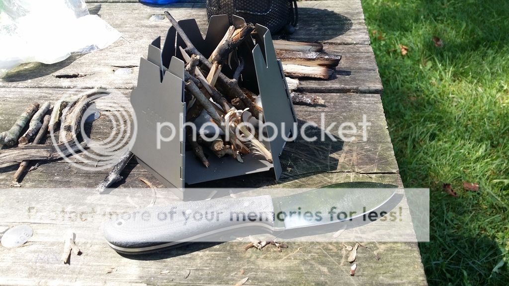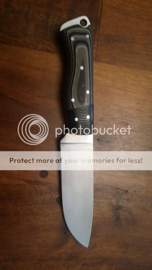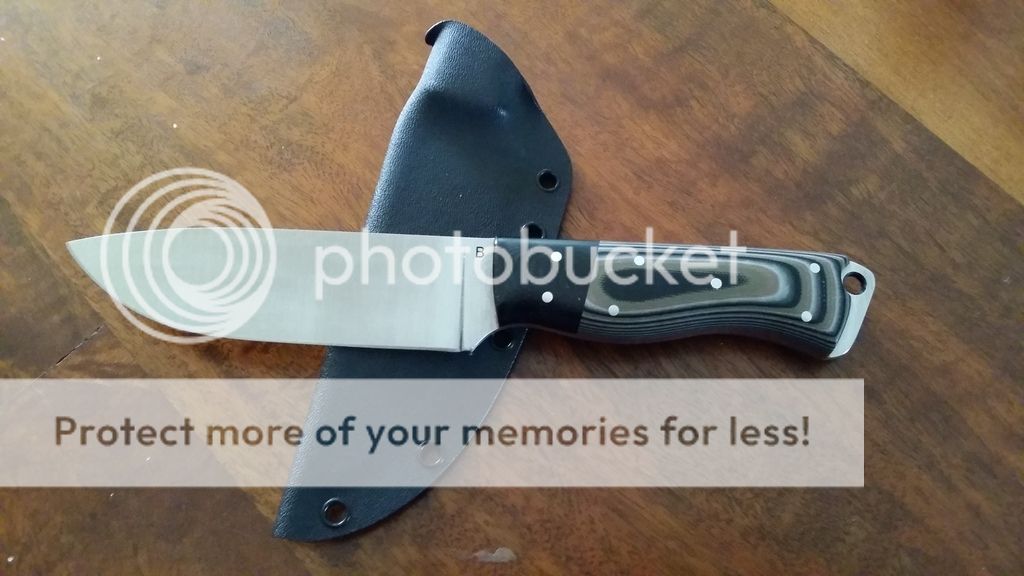 Some background: I wanted to get a bunch of action shots but we had so much fun I didn't want to ruin it with a bunch of pics and nonsense. I'm not a bushman or a woodsman. I'm a cop, powerlifter and wrestling coach. I have real basic woods skills. I'm no punk in the primitive but I'm not going to be on "Alone" anytime soon. First up id like to show you this guy. I call it a ness muk but I think the original sales thread called it a skinner. The guy I bought it from said it was made of 3V but I think we figured it was 440c. I'm not sure of the stats but I think it's just around 9" with about a 4.25" blade. It's the most comfy handle I have and it's a great EDC size for a big guy. It's become my favorite knife.