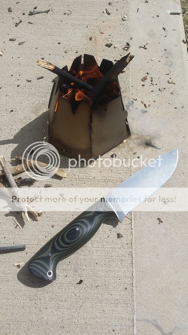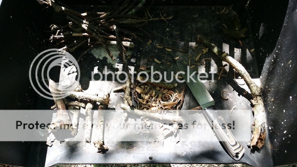 I've only heard bad things about 440c but let me tell you something different. This guy is a champion. When I got it I started carving a kucksa cup out of a block of wood (I'll show that when it's done). We took it out in the woods and began feather sticking. Next up was carving the boy some spears to try to catch some fish (not quite). The boy loves then batoning so we processed some wood. Again, for its size it sliced some wrist sized pieces. Awesome knife and it was still sharp.