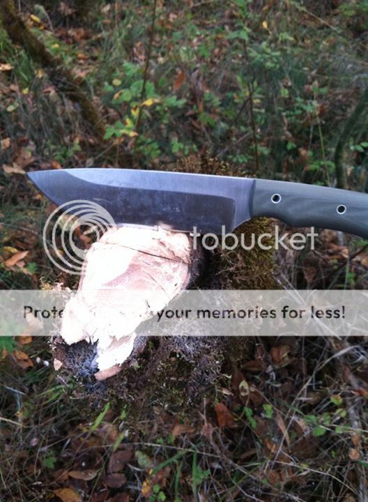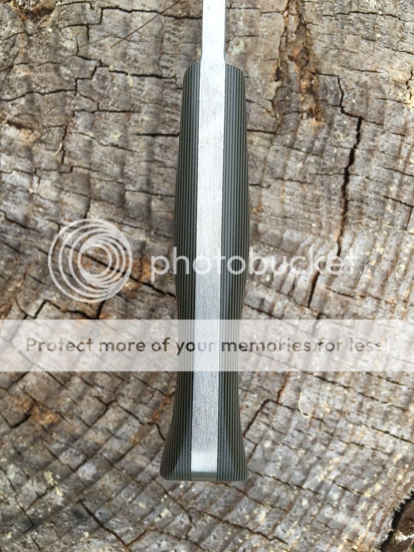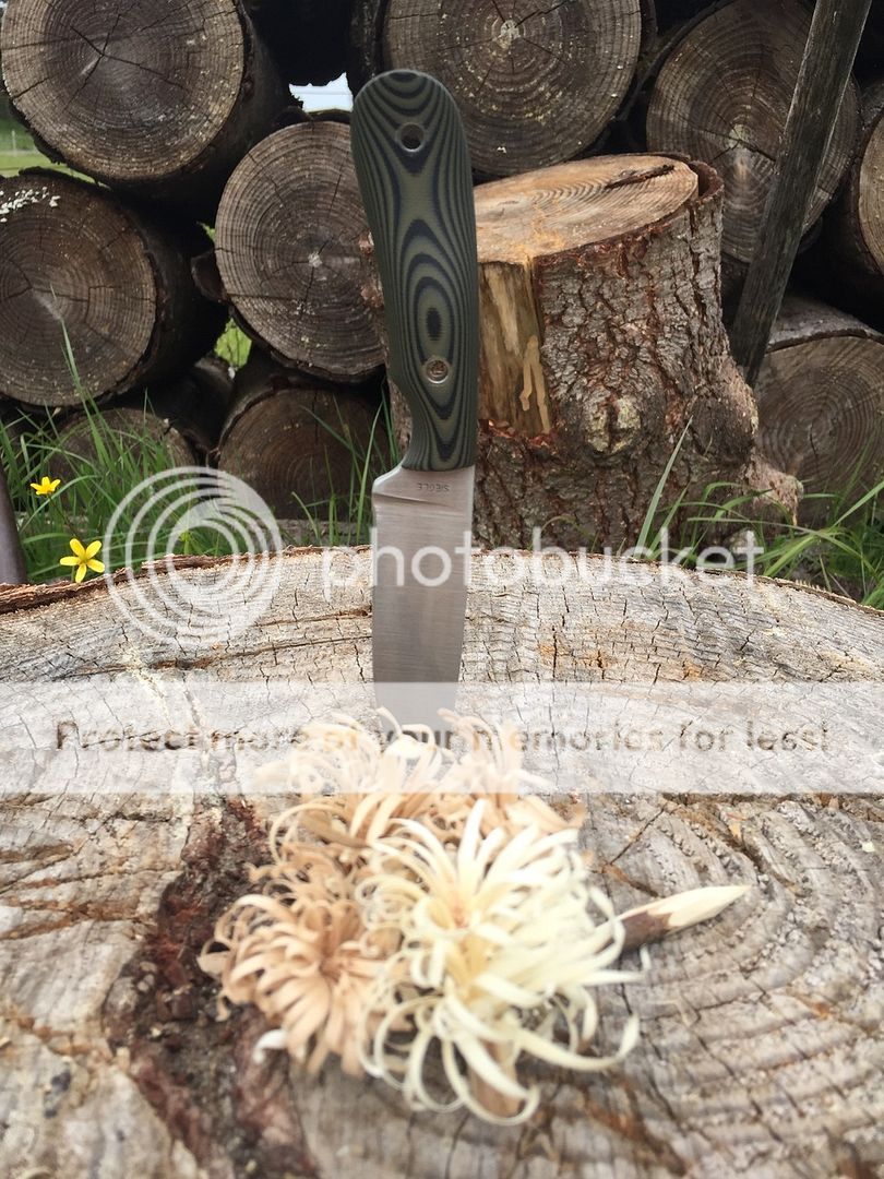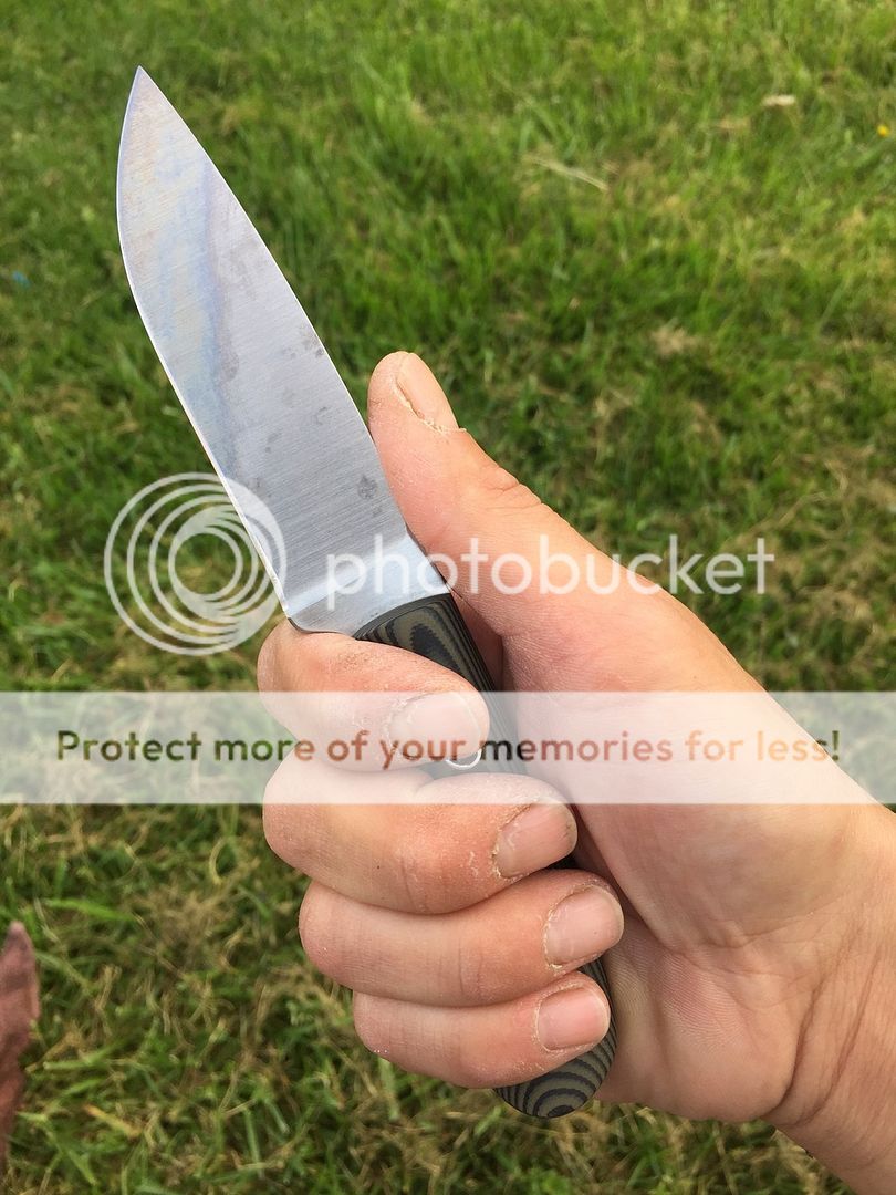 It's a hunk of 5160 at 3/16" for a knife that small but Bill tapered at nicely. It leaves the handle nice and hand filling and the blade slicy like an 1/8" knife. I could really do the fine work with the greatest of easy with no real hand fatigue at all.