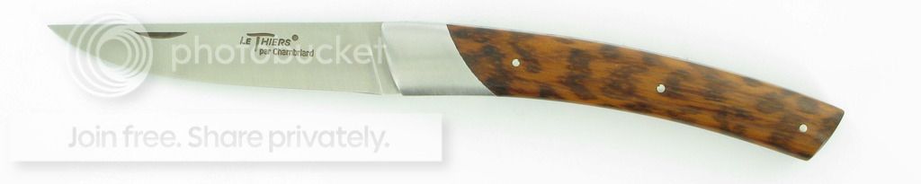 The collection is growing at a fairly leisurely pace, as it will continue to do since I'm not rich. The next knife I purchased was a Spyderco Endura 4 followed by three Mora fixed blades that have been assigned various tasks in the kitchen, my get-home bag, and my range bag. I'm rotating the Mini-Grip and the Endura between my pocket and my EDC bag depending on my mood or what I'm wearing. I attend a lot of semi-formal and several formal events over the course of a year, so I determined that I needed to add a gentleman's knife to the collection. I'm now the proud owner of a Fantoni Dweller with snakewood scales and I'm totally captivated by the knife. It's beautiful and I can't keep my hands off of it. The first few purchases pretty much have my knife requirements covered. I've decided that I want my collection to focus on my perception of gentleman's knives, hence my handle. I've already got my eye on my next purchase, which will probably be a Maserin Gourmet with ebony scales, but I'm in no hurry.